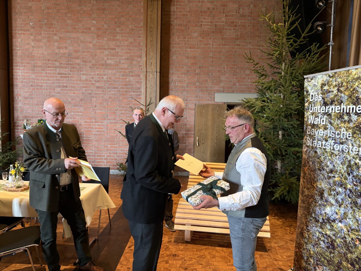 Zum Abschluss überreichte Personalratsvorsitzender Michael Wolf mit Kollegen ein Abschiedsgeschenk: eine Holzbank für den Garten. Damit verbunden war der Wunsch, Bösl möge künftig die Zeit im Wald genießen: ohne Dienstpläne und Budgetvorgaben.
