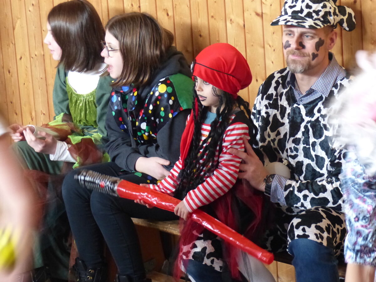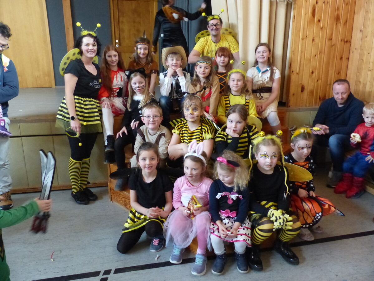 Nicht nur die Kinder waren maskiert, auch sehr viele Eltern und Großeltern schlüpften in Kostüme, nur die beiden Bürgermeister Anton Kappl und Karl Liegl kamen in ihrer Alltagskleidung. Die Mitglieder der Gymnastikgruppe versorgten die Kleinen mit ihren Eltern, dafür wurde aus dem Glashaus eine Kaffee-Brotzeitstube.