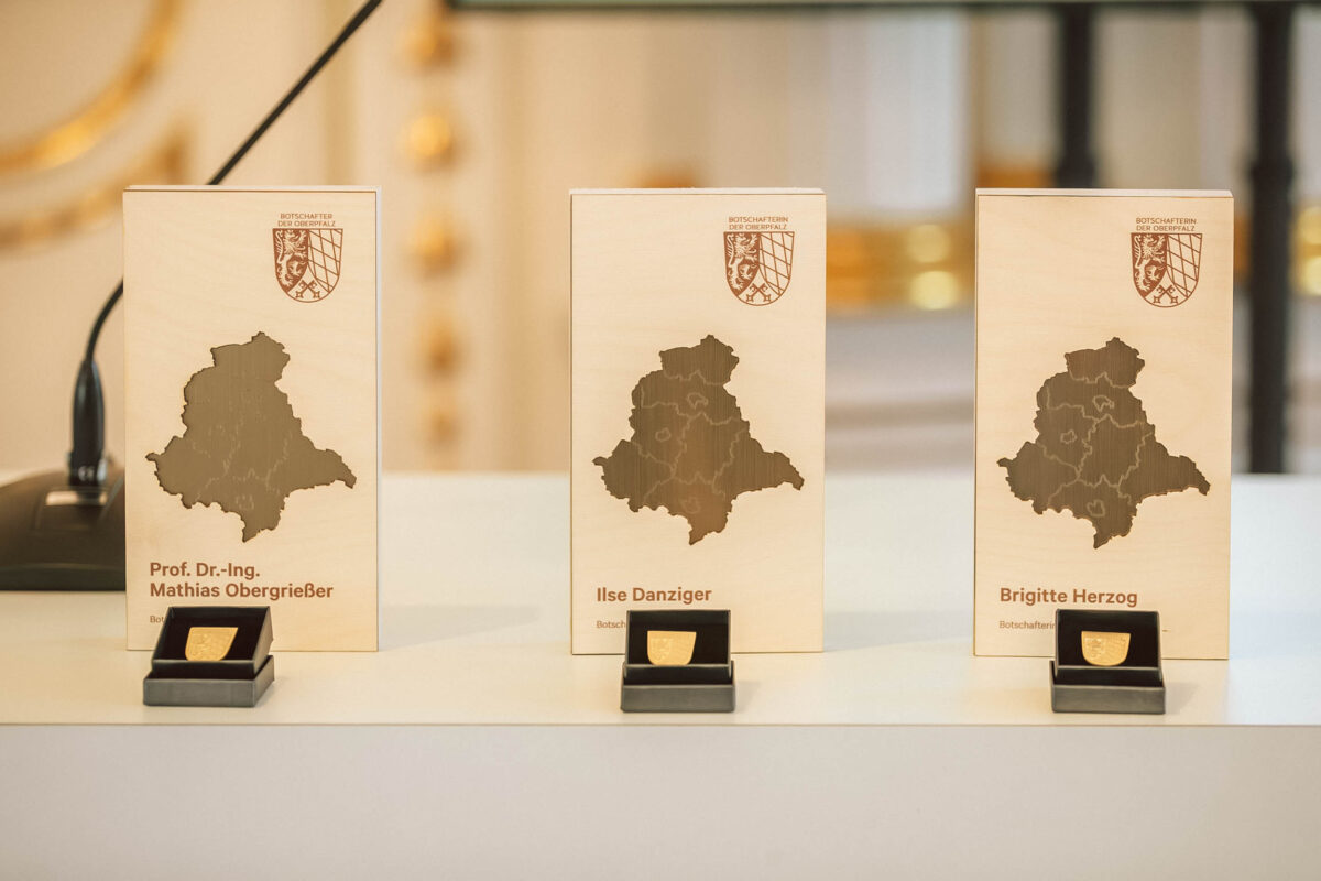 Auch die neuen Botschafterinnen und Botschafter der Oberpfalz sind weit über die Region hinaus bekannt und haben sie nachhaltig geprägt. Wilhelm Koch, Künstler aus Amberg, wurde in der Kategorie Kultur ausgezeichnet. Wintersportlegende Eric Frenzel aus Flossenbürg erhielt die Auszeichnung in der Kategorie Sport. Ilse Danziger, Vorsitzende der jüdischen Gemeinde Regensburg, sowie Brigitte Herzog, eine engagierte Verfechterin der Organspende, wurden in der Kategorie Gesellschaft geehrt.