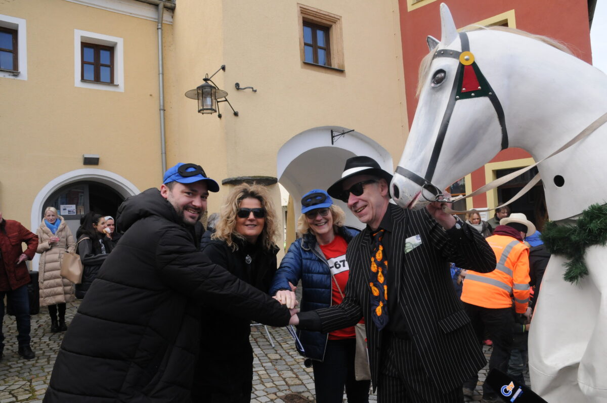 Ein kleines Mädchen durfte auf dem Schimmel eine Runde um den Gänselieslbrunnen drehen, was natürlich bei der Versteigerung den Preis in die Höhe trieb. Am Schluss waren sich Bürgermeister Sebastian Hartl, Jürgen Laubert und Beate Merkel einig: 450 Euro sind ein wirklich reeller Preis für diesen Schimmel, per Handschlag wurde das Geschäft auch „formell“ besiegelt.