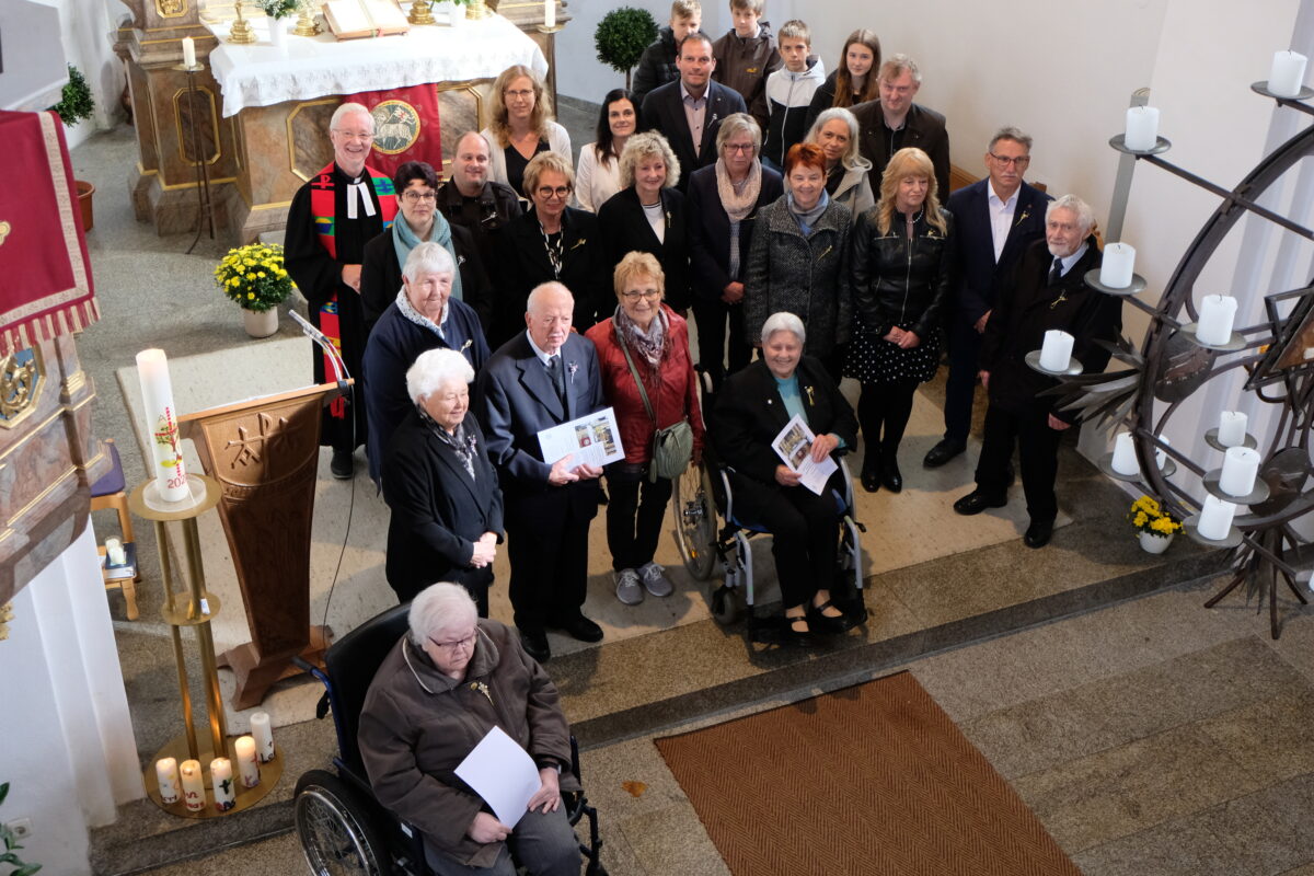 Mit der Gratulation und Verlesung der Namen der Jubilare überreichte Pfarrer Römischer die Erinnerungsurkunden und segnete die einzelnen Gruppen. Fürbitten, Vaterunser und das Schlusslied „Nun danket alle Gott“, Sendung und Segen beendeten den eindrucksvollen Festgottesdienst. Nach dem Gruppenfoto erfolgte der Friedhofsgang.