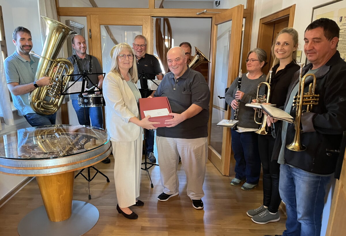 Die Glückwünsche zum 70. Geburtstag von Gerhard Mark wurden musikalisch untermalt. Zum ersten Mal spielte die Stadtkapelle unter der Leitung von Hans Rettinger vor einer Stadtratssitzung im Rathaus ein Ständchen. Am Vortag hatte der Jubilar seinen runden Geburtstag gefeiert. Zweite Bürgermeisterin Anita Heßler gratulierte im Namen des Stadtrats, dem Gerhard Mark seit 32 Jahren angehört. Sie dankte ihm zudem für sein enormes ehrenamtliches Engagement. Seit mehr als 20 Jahren leitet Mark als Vorsitzender den Stadtverband, die Dachorganisation aller Grafenwöhrer Vereine und Verbände und gilt als leidenschaftlicher Fürsprecher des Ehrenamtes.