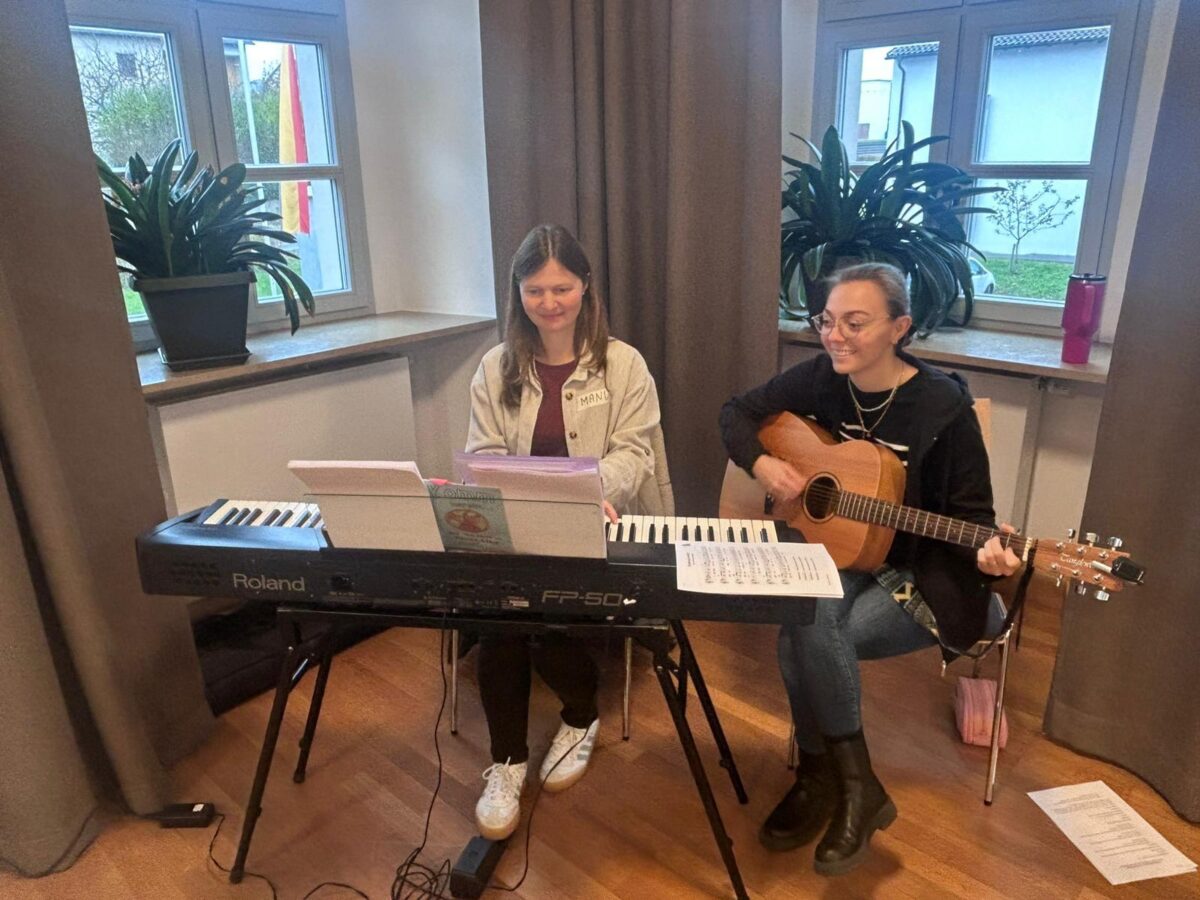Musikalisch wurde der Kinderbibeltag von Manuela Grünauer und Anna Woppmann begleitet, die mit den Kindern fröhliche Lieder einübten.