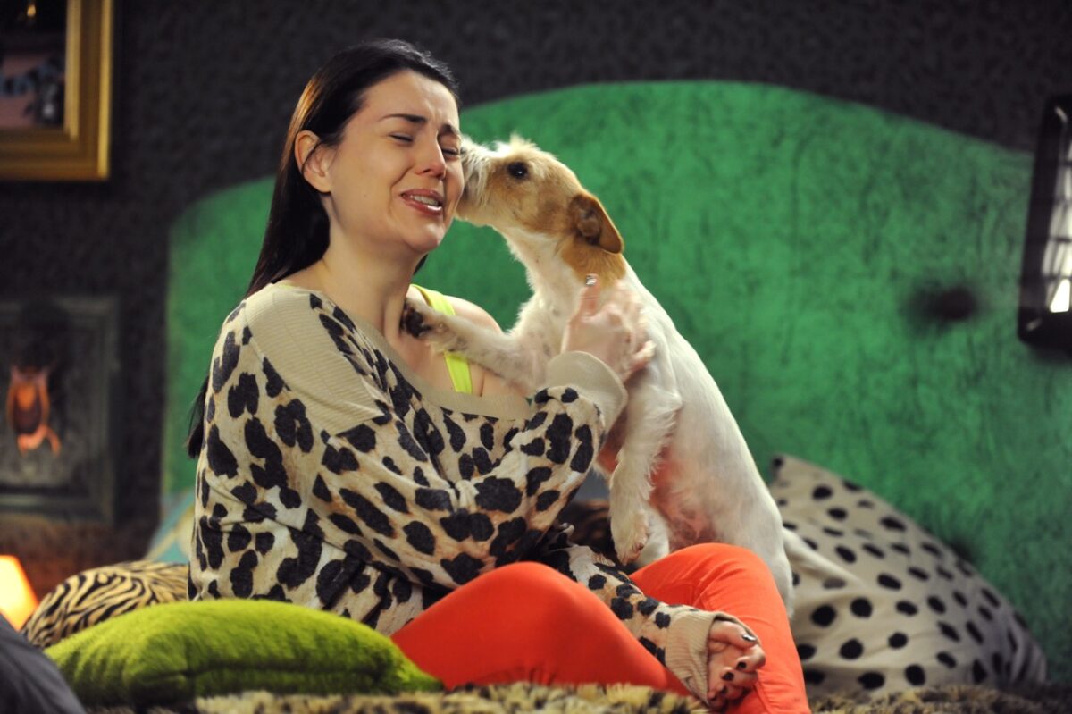 Es entstehen aber auch spontane Situationen: Am Mittwoch, 5. November, also genau bei Erscheinen unseres Interviews, kommt eine Folge mit Hunde-Yoga, in der beim Dreh was Lustiges passiert ist: Tina ist ja super unsportlich und wird überredet, Hundeyoga zu machen. Sie hat a grad für den herabschauenden Hund keine Kraft mehr, droht zusammenzubrechen, auf Bruni, die unter ihr ist. Bruni, also Lala, sollte nur zur Seite gehen, aber sie hat sich seitlich hingeworfen. Das hat super gepasst, war aber so gar nicht geplant.