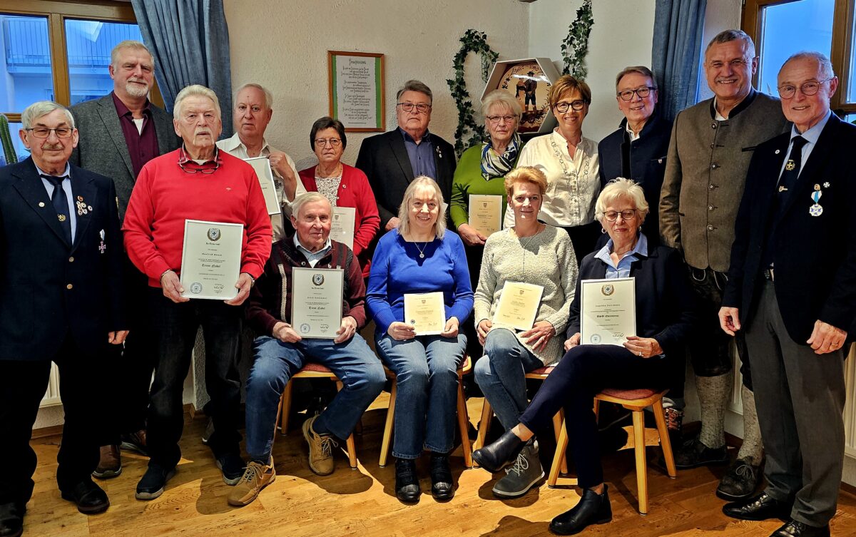 Die Ehrungen nahmen die Vorsitzenden Josef Lang, Alfons Betzl und Peter Ertl vor. 20 Jahre sind Gerda Buchert, Elisabeth Gollwitzer, Annette Lindner, Elfriede und Günther Magerl dabei. 10 Jahre sind Gunda Bauernfeind, Andrea Gäbl, Daniela Östreicher und Josef Reintsch Mitglied. Für 25 Jahre Zugehörigkeit und auch zum BSB erhielt Ronny Kühnl die Urkunde, für 40 Jahre Zugehörigkeit zum BSB weiter Elfriede und Manfred Fromm, Erich Gruhle, Manfred Rauch, Erich Schleicher und Maria Del Carmen Winter. Das Ehrenkreuz des BSB erhielten Elisabeth Gmeiner, Angelika Zetzlmann und Anton Moll. Zudem erhielt Wolfgang Gmeiner eine besondere Auszeichnung des BSB mit dem Verdienstkreuz II. Klasse.