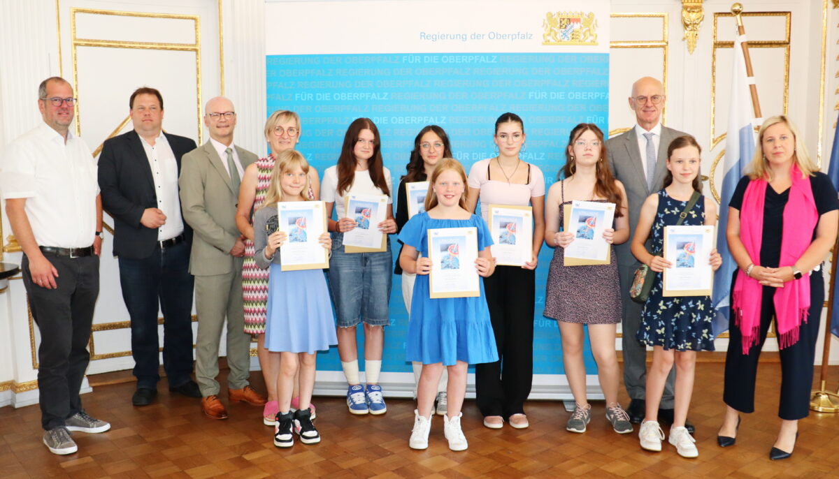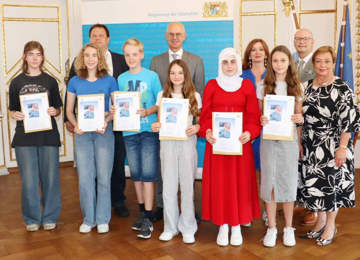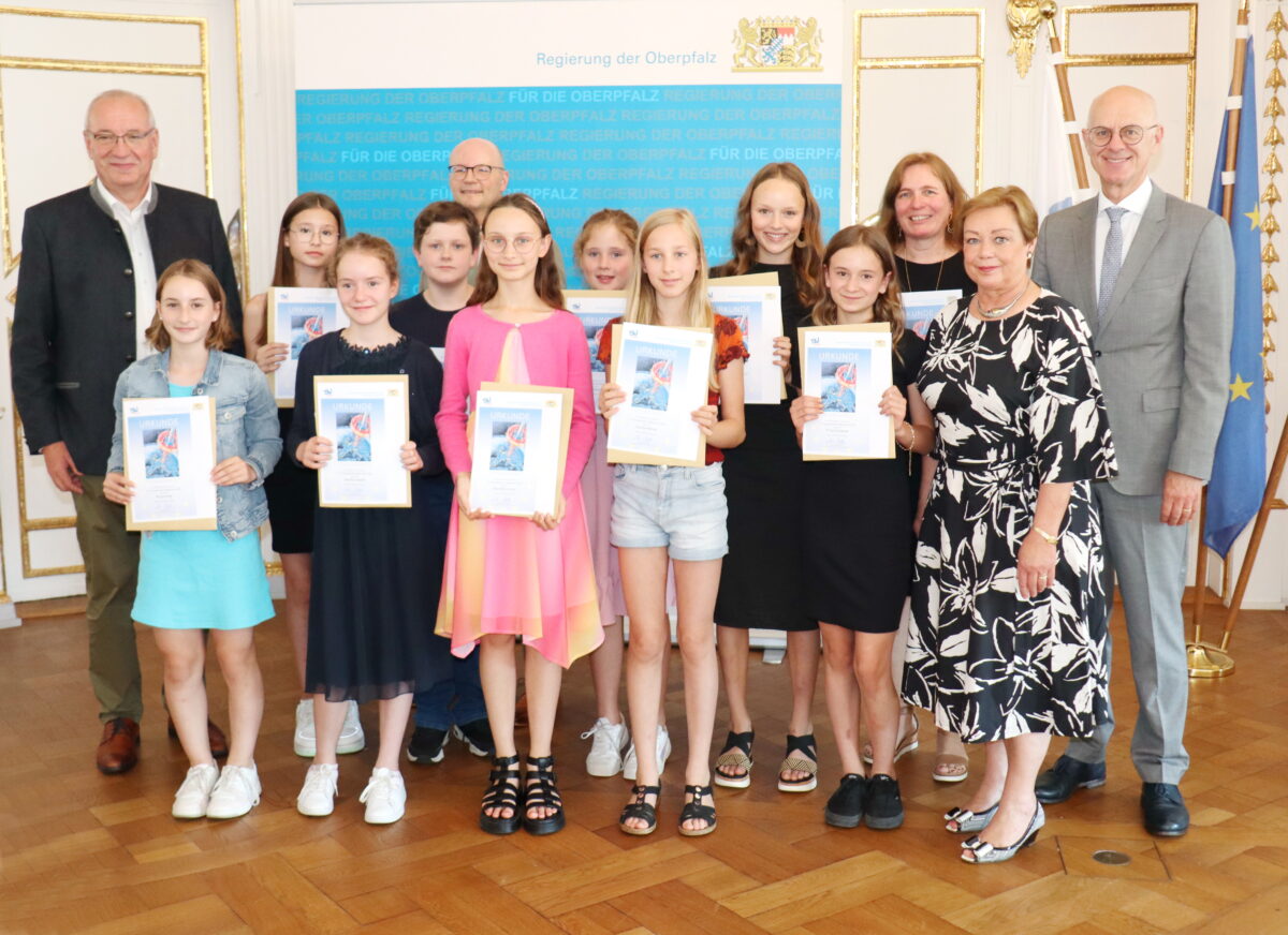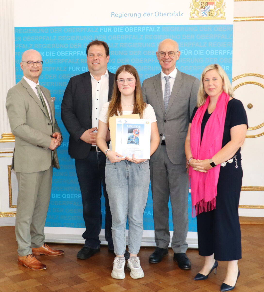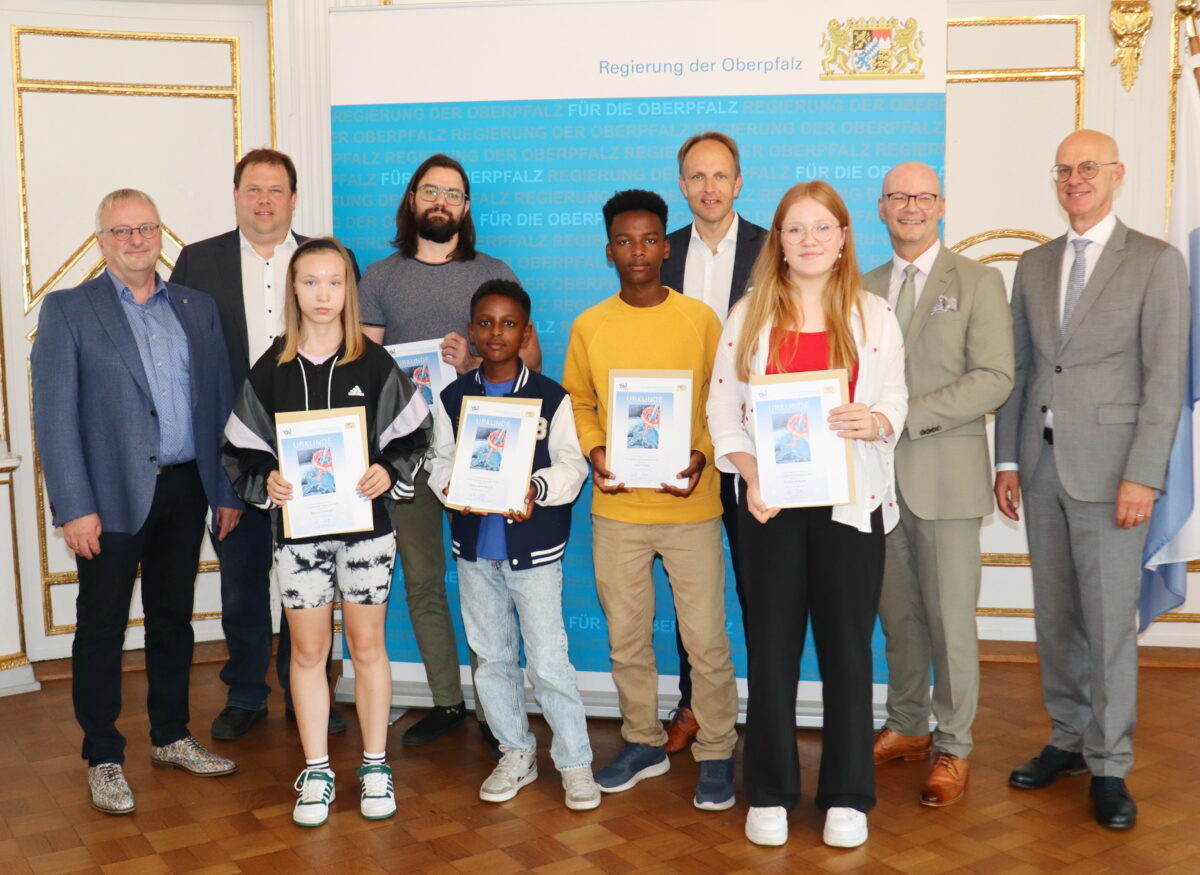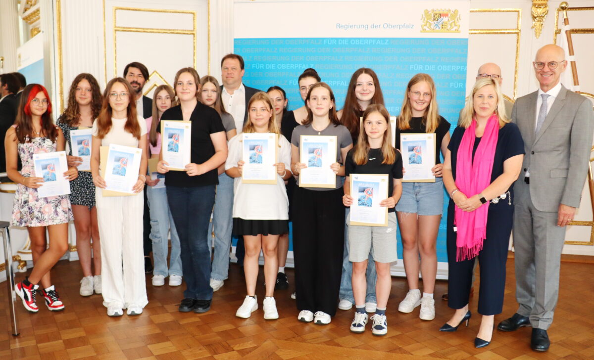 Die Landessieger wurden von den Schirmherren Regierungspräsident Walter Jonas und Bezirkstagspräsident Franz Löffler geehrt. Bei der feierlichen Preisverleihung waren auch Landrätin Tanja Schweiger, Bezirksheimatpfleger Dr. Tobias Appl, Abteilungsdirektor Thomas Unger (Bereichsleiter Schulen an der Regierung der Oberpfalz), sowie eine Vielzahl von Vertretern der Schulaufsicht und der Schulen dabei.