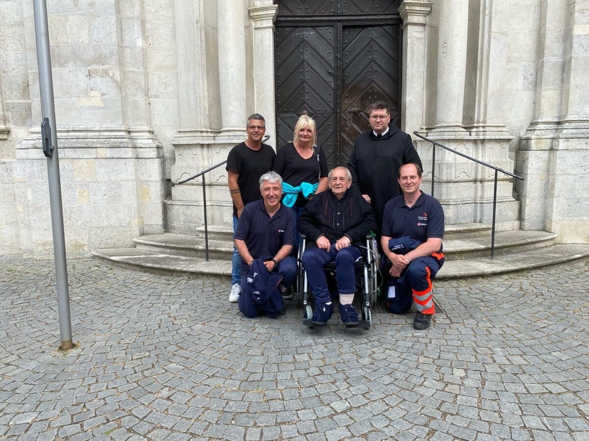 Der Gast, dessen Tochter und Andreas, der ehrenamtliche Hospizbegleiter, machten sich mit dem Herzenswunsch-Krankenwagen auf den Weg vom Hospiz Sankt Felix an die Donau. Mit dem Schiff ging es von Kelheim durch den Donaudurchbruch zum Kloster Weltenburg.