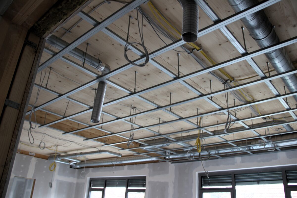 Auf einer Nutzfläche von 459 Quadratmetern bietet das Gebäude künftig Platz für die Betreuung der Schülerinnen und Schüler. Es umfasst drei Kellerräume, fünf Gruppenräume, eine Mensa, eine Küche sowie Personal- und Sanitärräume. Das Konzept verzichtet bewusst auf einen klassischen Flur: Der zentrale Bereich ist flexibel nutzbar und ohne zusätzliche brandschutztechnische Einschränkungen gestaltet. Dies schafft offene, vielseitig einsetzbare Räume für den Alltag der OGTS.