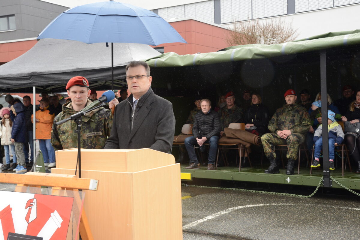 Seit Beginn der Patenschaft habe sich die Batterie an vielen örtlichen Veranstaltungen eingebracht. „Wir werden mit dir lieber Johannes einen freundlichen und hilfsbereiten Menschen mit dem unverkennbaren Dialekt vermissen“. Dieser Abschied werde im Berufsleben eines Soldaten vorgegeben, weil verschiedene Dienstposten und Kommandoebenen zu durchlaufen seien, sagte das Stadtoberhaupt. Jetzt warte auf Major Müller eine neue Herausforderung.