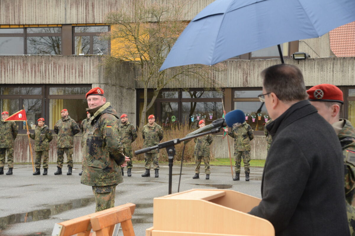 Dies wertete der Bataillonskommandeur als Zeichen des Respekts, der Anerkennung, der Kameradschaft und der Verbundenheit mit den beiden „Hauptdarstellern“ des Nachmittags, Major Johannes Müller und Hauptmann Christian Knorn. Die Öffentlichkeit mit einzubeziehen, sei ihm, als wichtige Zeremonie, persönlich am Herzen gelegen, betonte der Oberstleutnant. Der Appell der vierten Batterie des Bataillons 131 sei der Beweis für die Verbundenheit mit der Stadt Windischeschenbach, seit der Begründung der Patenschaft mit der Batterie am 11. September 2021, die sich als intensive und freundschaftliche Beziehung entwickelt habe.