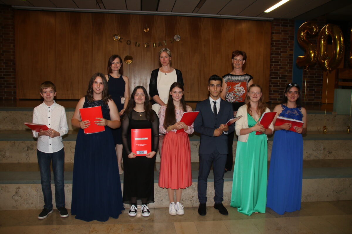 Die Jahrgangsbesten waren in der neunten Klasse Emily Schäfer, Barazni Ahmad, Laura Friedrich und Aleyna Wloka sowie in der zehnten Klasse Alexander Schieder, Juliane Zimmerer und Marlena Gashi.