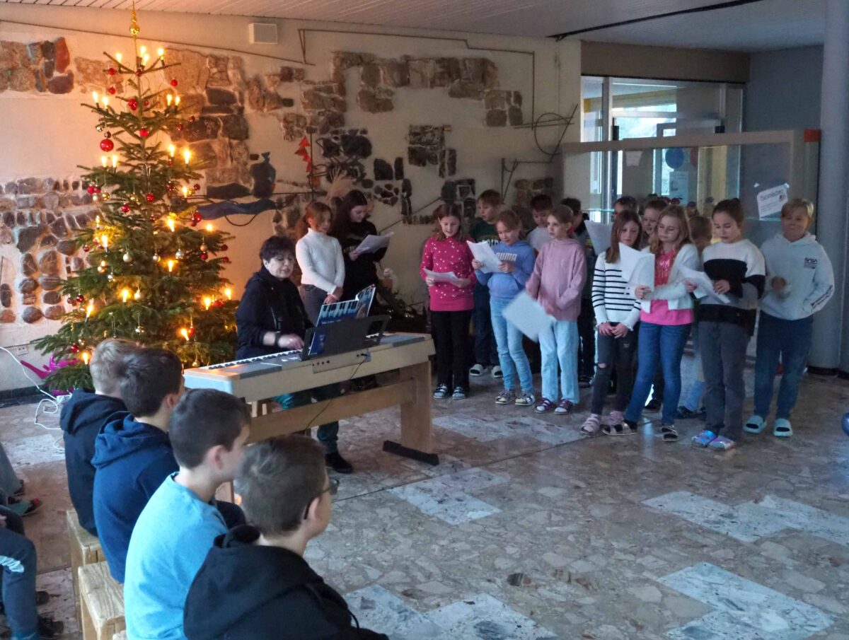 Die Grund- und Mittelschule in Erbendorf startete die zweite Adventswoche mit einem musikalischen Morgen. Die Schülerinnen und Schüler der dritten und vierten Jahrgangsstufen versammelten sich in der Aula, umgeben von der Krippe und Weihnachtsbaumlichtern. Das musikalische Programm begann mit der Klasse 4a und dem Lied “Das Licht einer Kerze”. Unter der Leitung ihrer Musiklehrerin, Silvia Hartmann, die das Keyboard spielte, brachten sie die Adventsstimmung zum Leuchten.