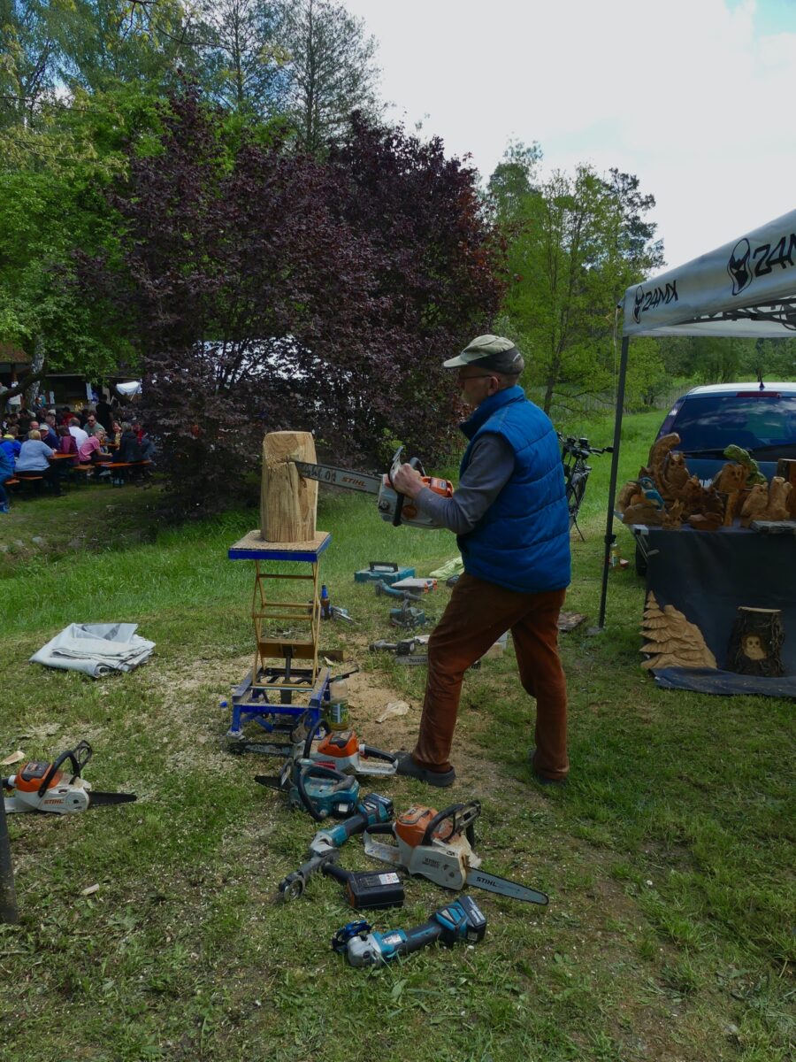 Auch wenn es in diesem Jahr keinen Meiler gab, war einiges geboten. So bot Holzwurm Karl-Heinz Stoiber aus Amberg seine Schnitzkunst feil und arbeitete auch vor den Besuchern. Nebenan war der Bogenschießstand des Historischen Vereins aufgebaut und wurde vor allem von Kindern genutzt. Kulinarisch wurde neben den obligatorischen Bratwürsten und Grillkäse der traditionelle Köhlerbraten, ein Surbraten mit Kartoffel und Sauerkraut angeboten und auch sehr gut angenommen. Zur sehr gut bestückten Kuchentheke gesellte sich am Nachmittag auch ein Crépestand.