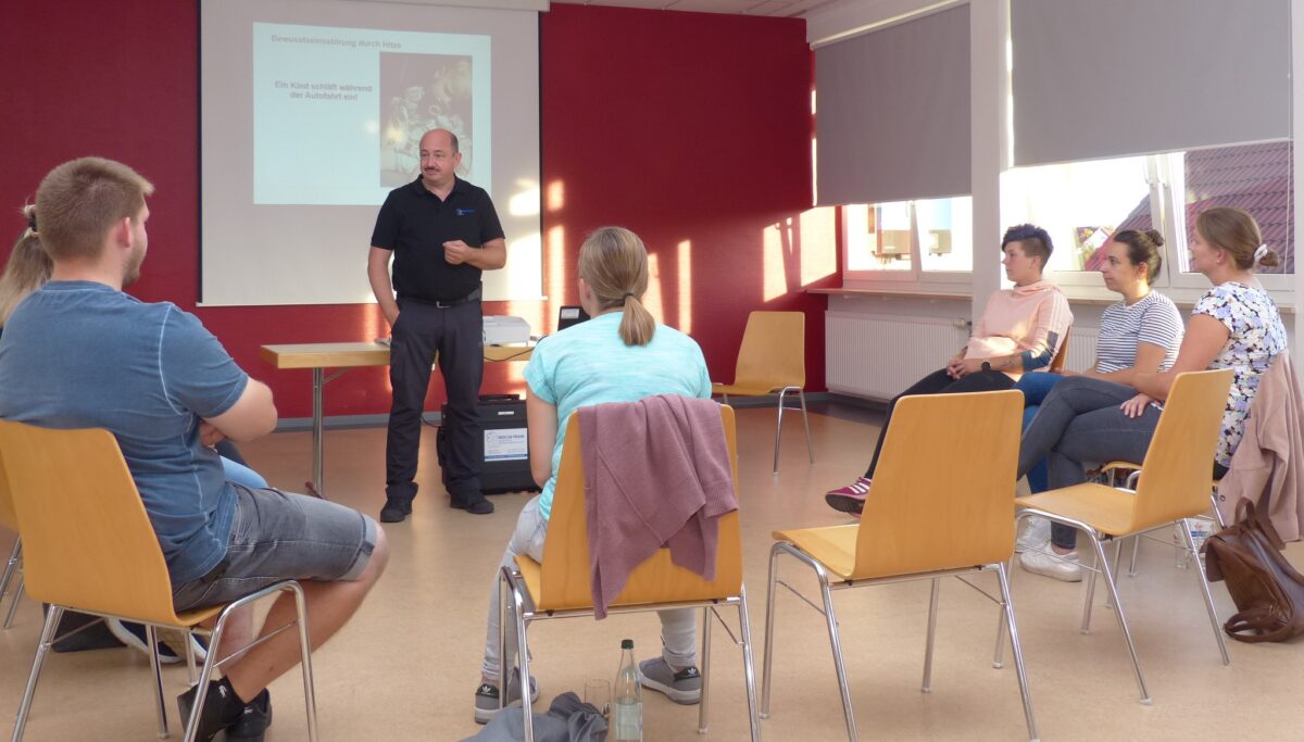 Bei Kindern gilt es in Notfällen anatomische und psychologische Besonderheiten zu beachten. An zwei Nachmittagen wurde interessierte Eltern von Kleinkindern durch Marco Frischholz von „Rescure-Train“ aus Nabburg weitergebildet. Marco Frischholz, ein erfahrenen Rettungssanitäter, sprach an den beiden Tagen alle vorstellbaren Situationen an, die man mit einem Kind erleben kann.