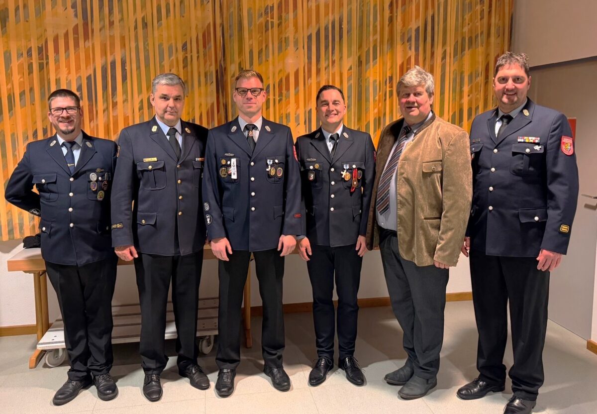 Das Feuerwehr-Ehrenzeichen für 25-jährigen aktiven Dienst konnte als besondere Auszeichnung für langjährige Treue und Einsatzbereitschaft an Tobias Rösch und Thomas Zitzmann.