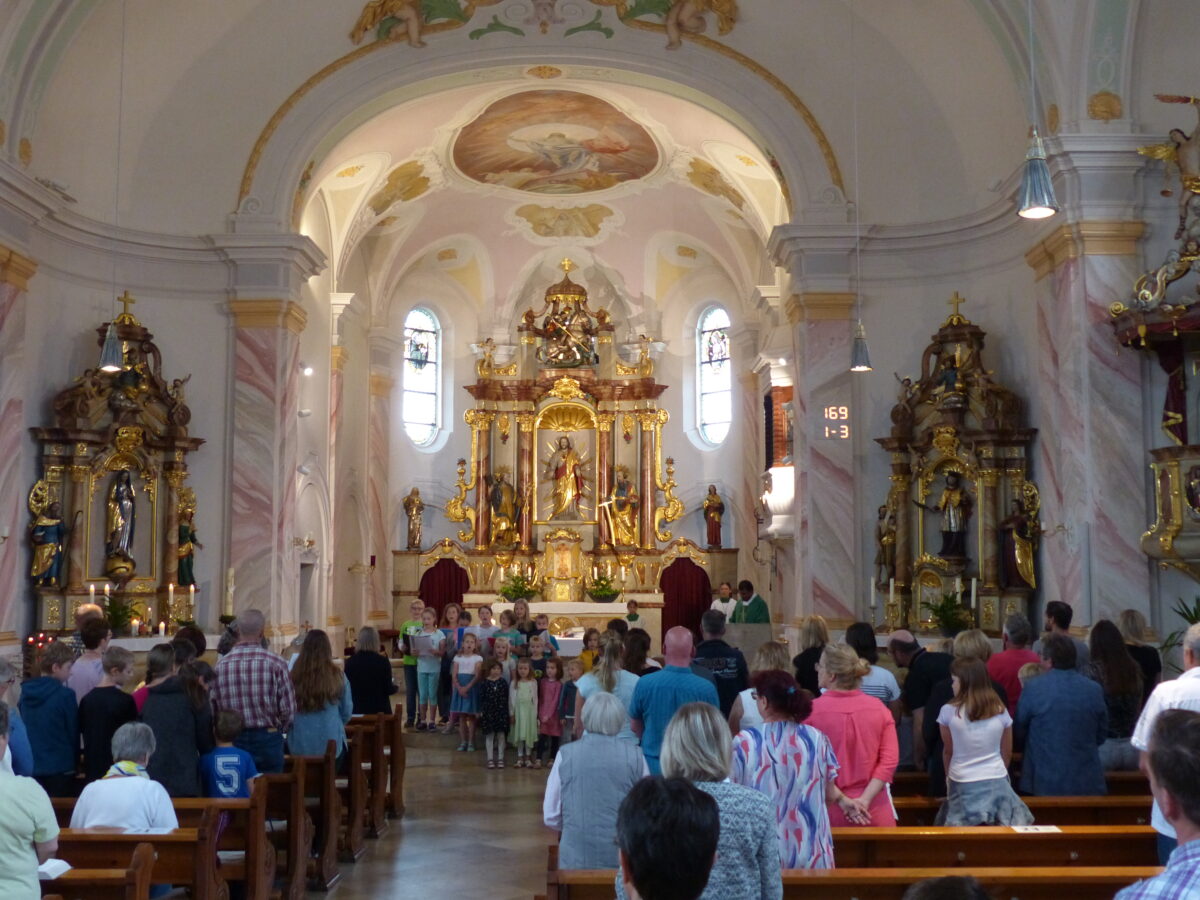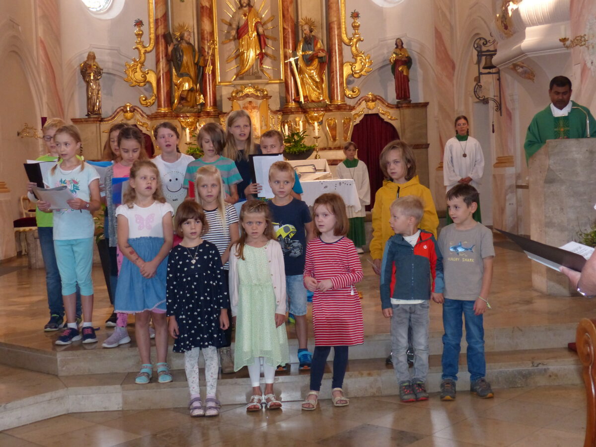 Ein Gottesdienst, der seinen Namen wirklich verdiente. Noch besser wäre die Bezeichnung Kindergottesdienst gewesen, denn die Kinder hatten den Hauptpart des Gottesdienstes übernommen. Schon am Kirchenbesuch merkte man, da muss was Besonderes sein, wenn so viele Kinder da sind. Der eigens gegründete Kinderchor war mit großem Eifer und Freude dabei. “Da einige noch nicht lesen können, musste der Text eben auswendig gelernt werden”, erläuterte Maria Müller.