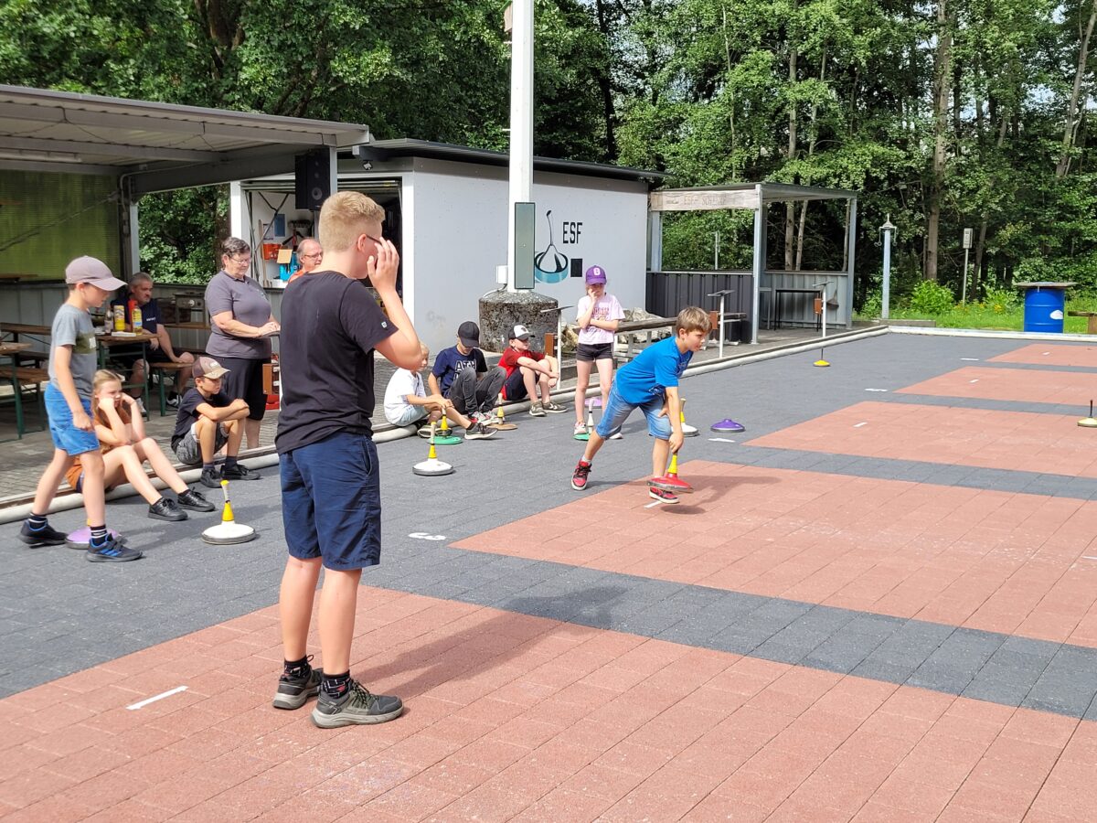 Püchersreuth. Asphaltstockschießen in Neustadt/WN im Rahmen des Ferienprogramms mit Wanderung und Brotzeit.