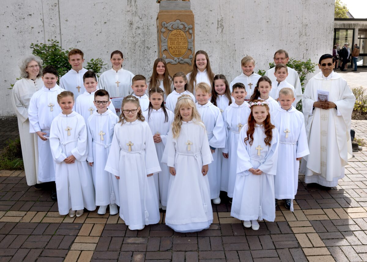 Nach den Vorbereitungen im Schulunterricht und in der Pfarrei durch Pfarrer Augustin Lobo und der Gemeindereferentin Waltraud Dobmann waren alle gut auf diesen besonderen Tag vorbereitet. Unterstützt wurden sie durch die Eltern, die schon im letzten Jahr beim Krippenspiel, dem Vorstellungsgottesdienst, dem Versöhnungsfest nach der Erstbeichte und dem Gestalten der Kommunionkerze tatkräftig mitgeholfen haben.
