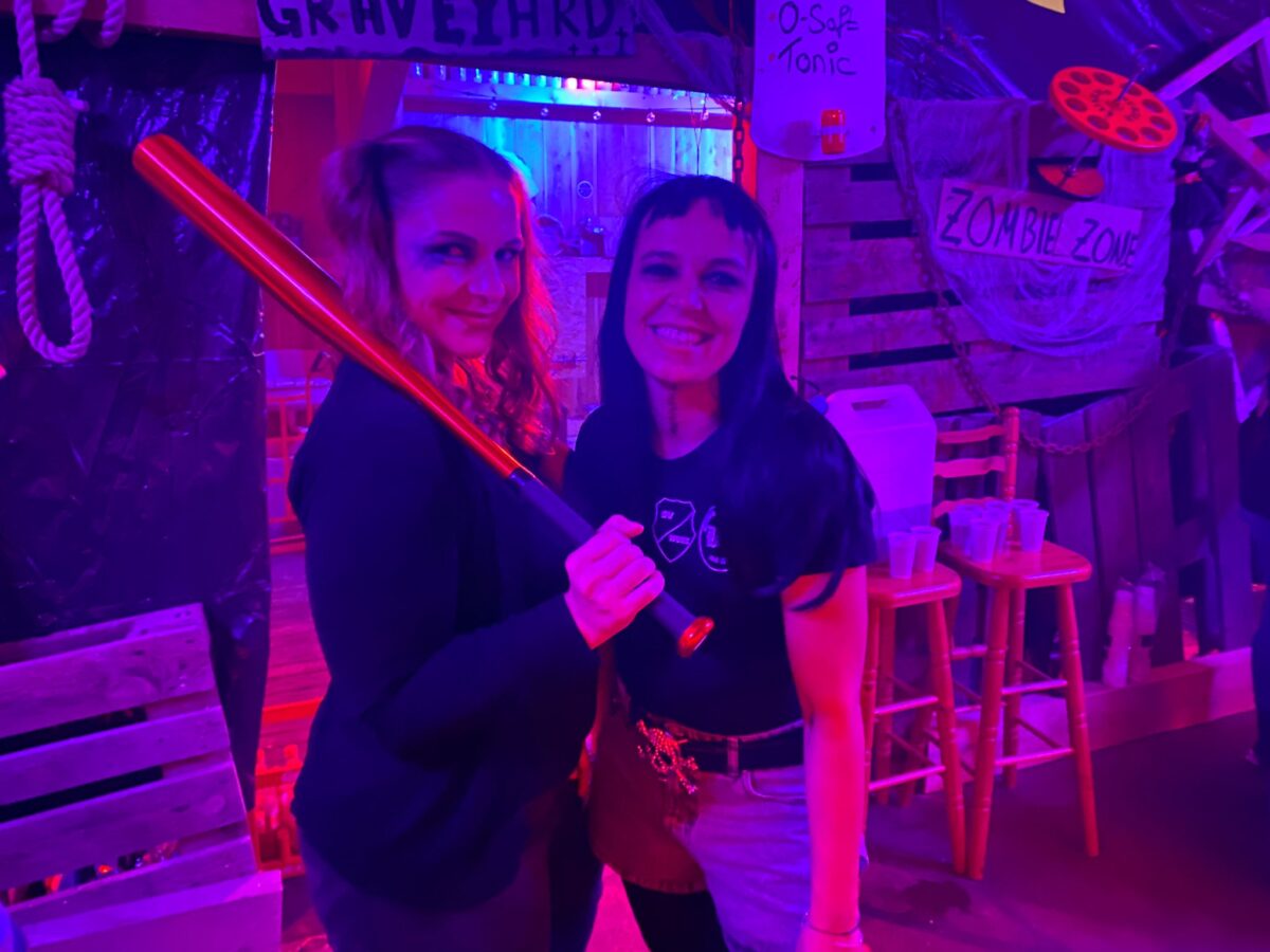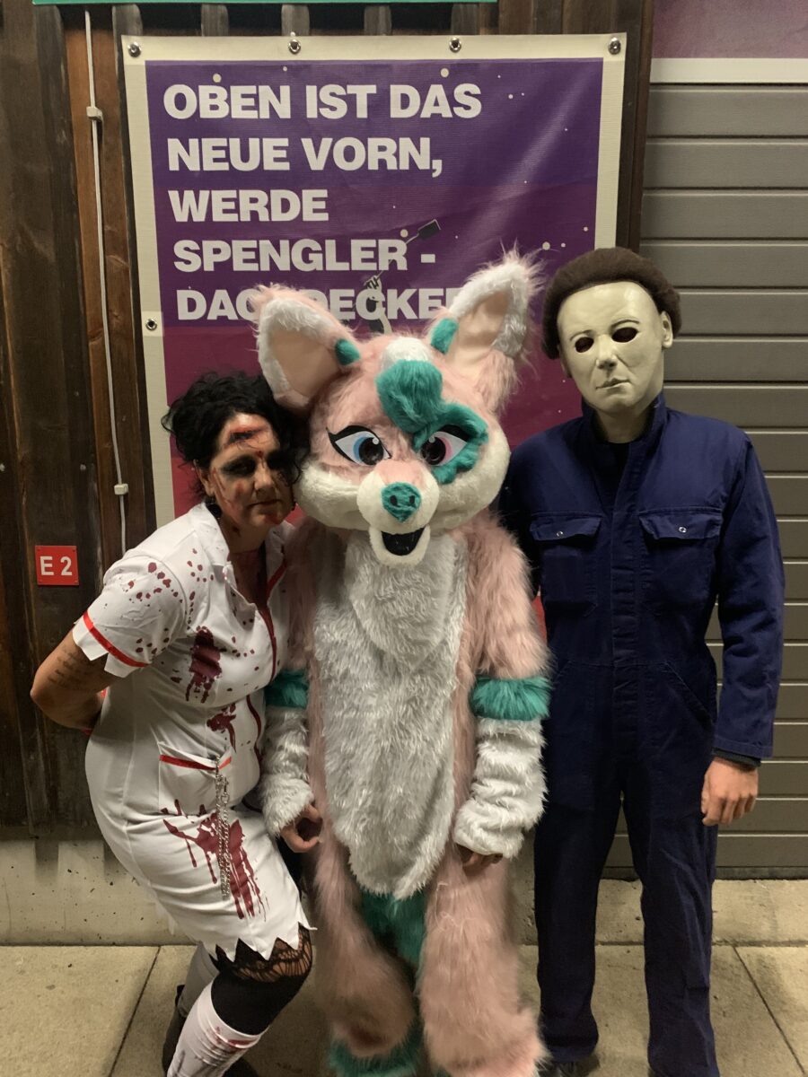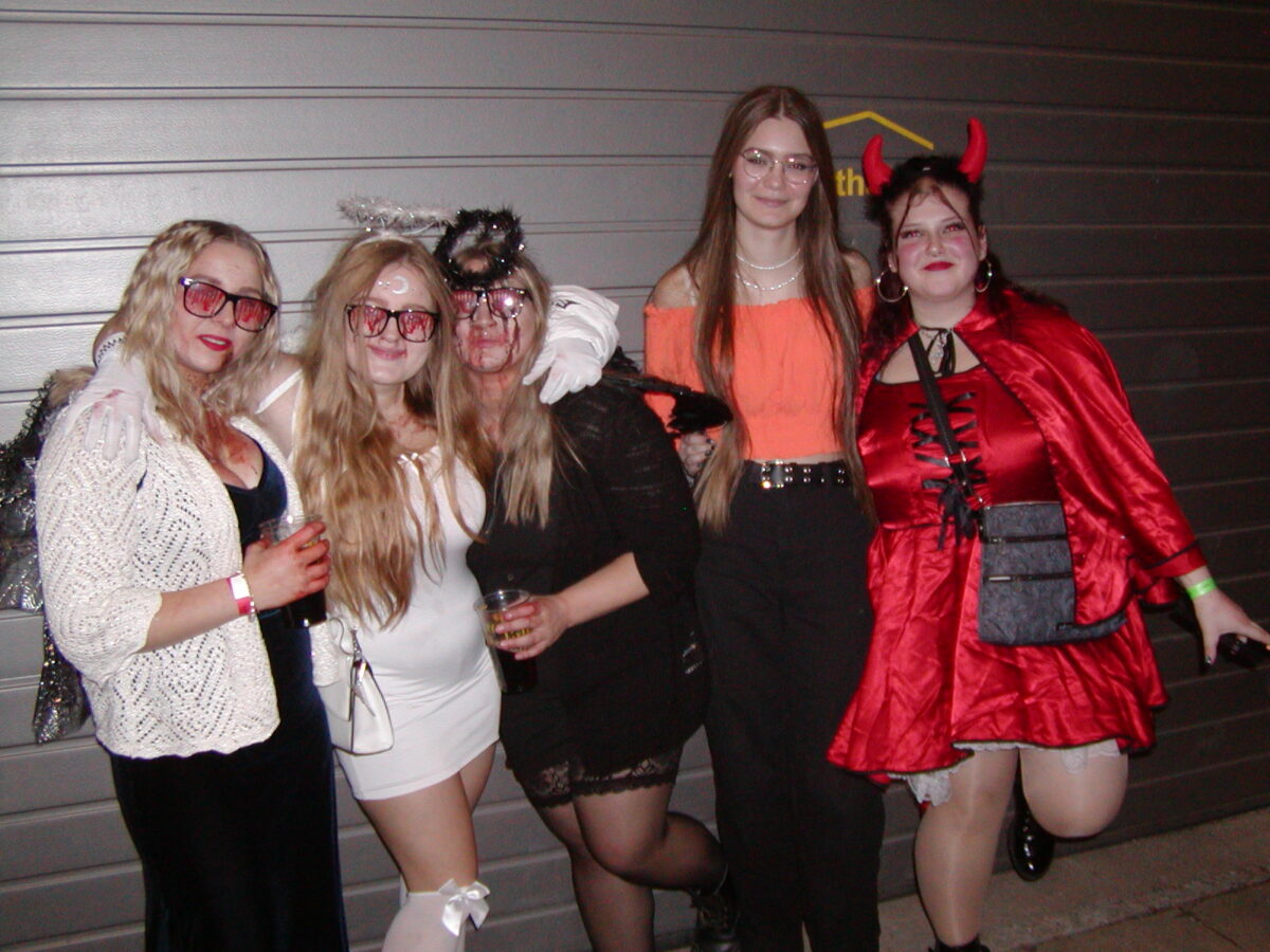 Bemerkenswert war auch die Deko in der abgetrennten O`Schnitthalle. Selbsterschaffene Spinnen, Totenköpfe oder Särge verteilten sich in der Eventhalle. Dazu erschienen Besucher im Teufels- oder Zombiekostümen.