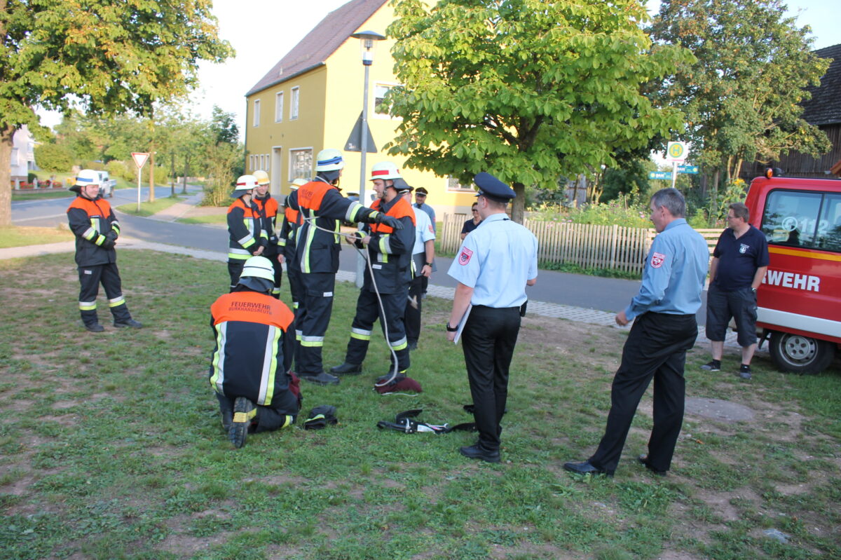 Nicht weniger als 27 Aktive der Freiwilligen Feuerwehr Burkhardsreuth aus allen Altersgruppen teilten die Einschätzung ihres Kommandanten Stefan Groß und unterzogen sich auf dem Preißacher Dorfplatz dieser „Feuerprobe“, bei der es heuer zwei Neuerungen gab.
