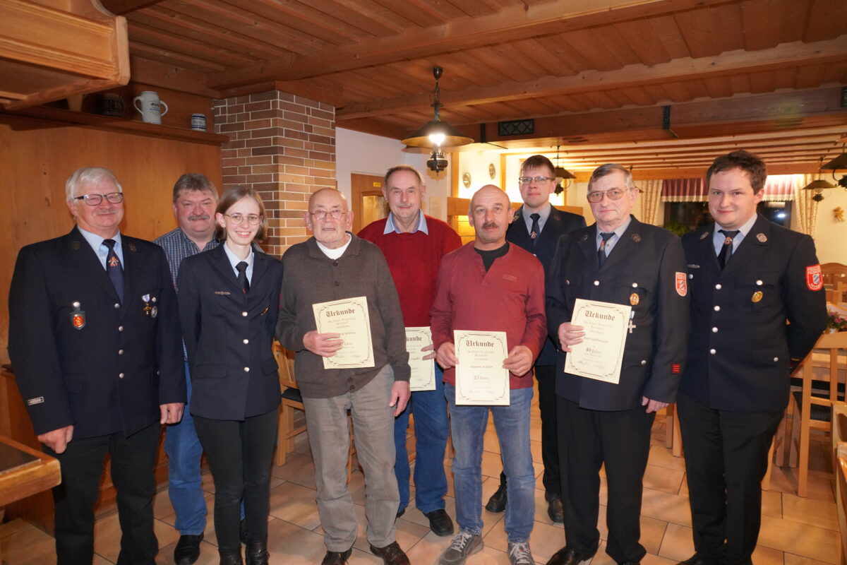 Für 25 Jahre Mitgliedschaft wurde Hubert Kleber aus Oberbernrieth geehrt. Ludwig Geitner (Oberbernrieth), Karl Gollwitzer (Bibershof) und Werner Müller (Waldthurn) sind 40 Jahre bei der Bernriether Wehr. Franz Schaller aus Bibershof bringt es auf 55 Jahre und Karl Troidl vom Birkenbühl gar auf 60 Jahre Mitgliedschaft.