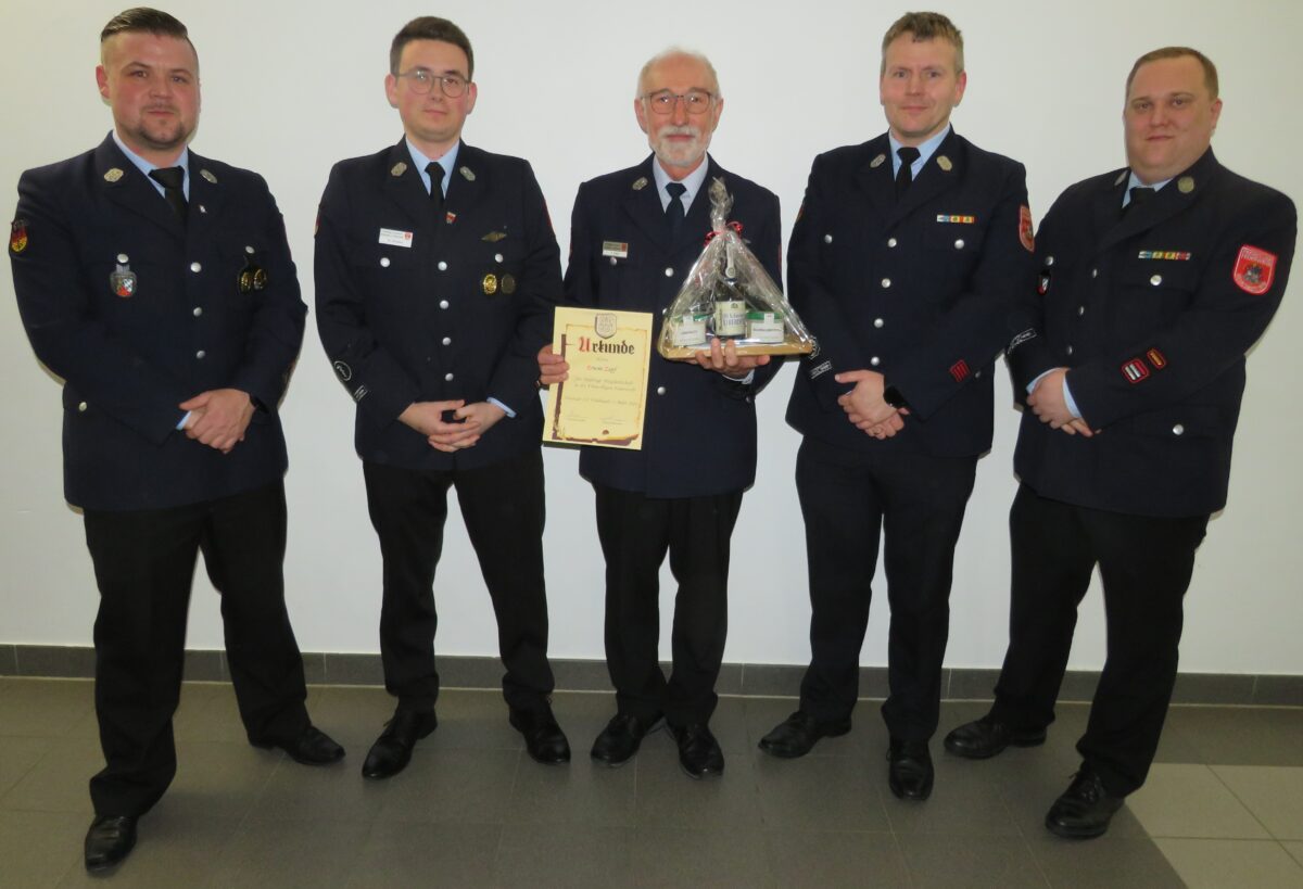 Seit 50 Jahren hält Erwin Zapf dem Feuerwehrverein Neustadt die Treue. Dies belohnte der kommissarische Vorsitzende Max Schwarz in der Jahreshauptversammlung in der Stadthalle mit einer Urkunde und einem Präsent.
