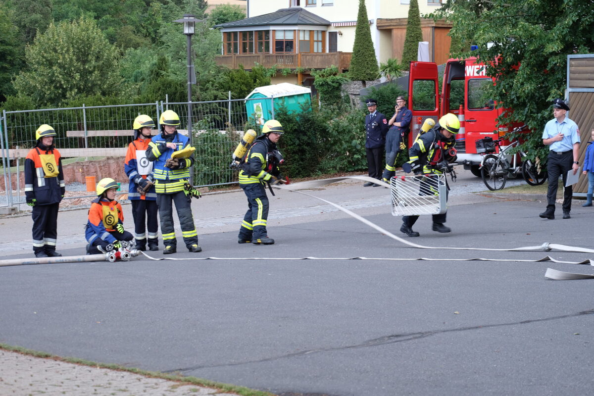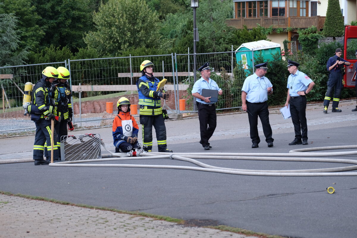 Das Leistungsabzeichen in der Stufe I in Bronze erhielten Noah Zwerenz, Lotta Heinze, Andrea Hofmann und Sanel Terzo. Stufe II in Silber bekam Thomas Beutner. Stufe VI in Gold Blau ging an Maximilian Rösch und Stufe V in Gold Blau erreichte Florian Rösch. Mit dem Abzeichen BFV 1 (Bezirksfeuerwehrverband 1 – Bronze) Ü40 wurden Mario Feneis und Tobias Smola dekoriert. Als Ergenzer fungierten Thomas Zitzmann, Thomas Kraus und Patrick Eggmeier. Für die Absicherung war die Jungfeuerwehr zuständig.