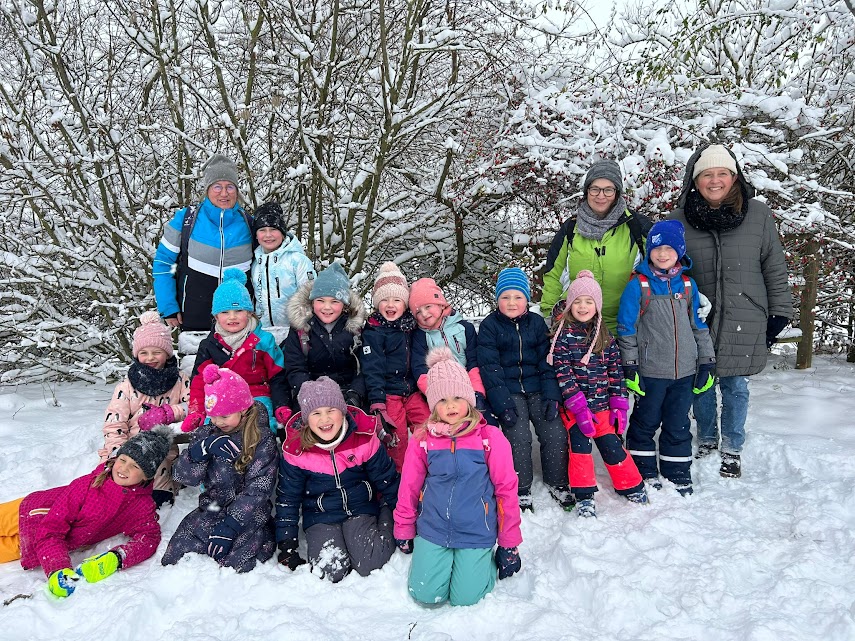 Federführend ist die Betreuerin Nicole Venzl, die mit Sigrid Strobel und Claudia Seidler fleißige und umsichtige Mitarbeiterinnen hat. Was nicht zu erwarten war, aber riesige Freude bereitete, war die Abschlusswanderung im Dezember, bei der es tiefen Schnee gab. Vom Kreislehrgarten auf dem Bocklradweg ging es nach Haupertsreuth. Spiel und Spaß im Schnee war das absolute Highlight. In Haupertsreuth angekommen gab es eine kleine Stärkung mit Lebkuchen und Kinderpunsch. Der Rückmarsch über den Bockradweg ließ die Kinder noch einmal so richtig austoben.
