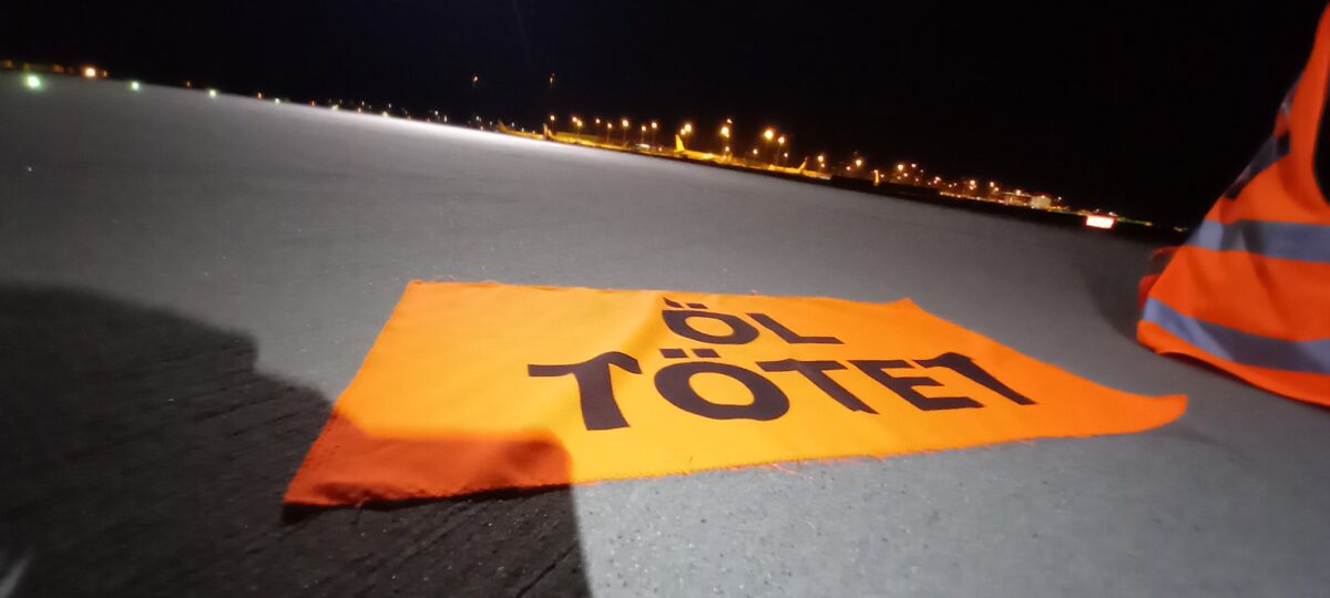 Mehrere Frauen der Letzten Generation hatten gegen Mitternacht das Gelände betreten, um auf dem Rollfeld für einen internationalen Ausstiegsvertrag für fossile Brennstoffe zu demonstrieren. Der Protest sei Teil der internationalen Kampagne “Oil Kills”, informierte die Letzte Generation in einer Pressemitteilung am Morgen. Sie fordert die Regierungen auf, einen Vertrag zu unterzeichnen, der den Ausstieg aus Öl, Gas und Kohle bis 2030 regelt.