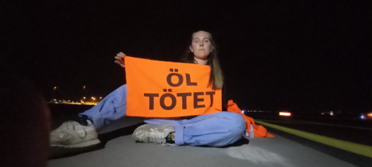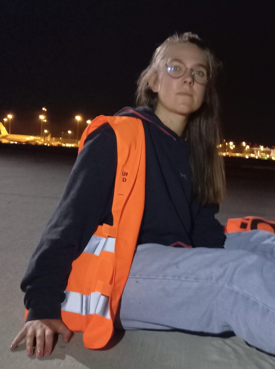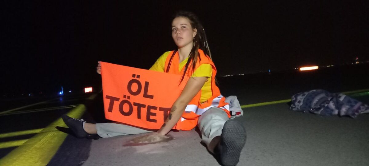 Flughafen Leipzig: Klima-Aktivistin Ronja Künkler blockiert Rollfeld
