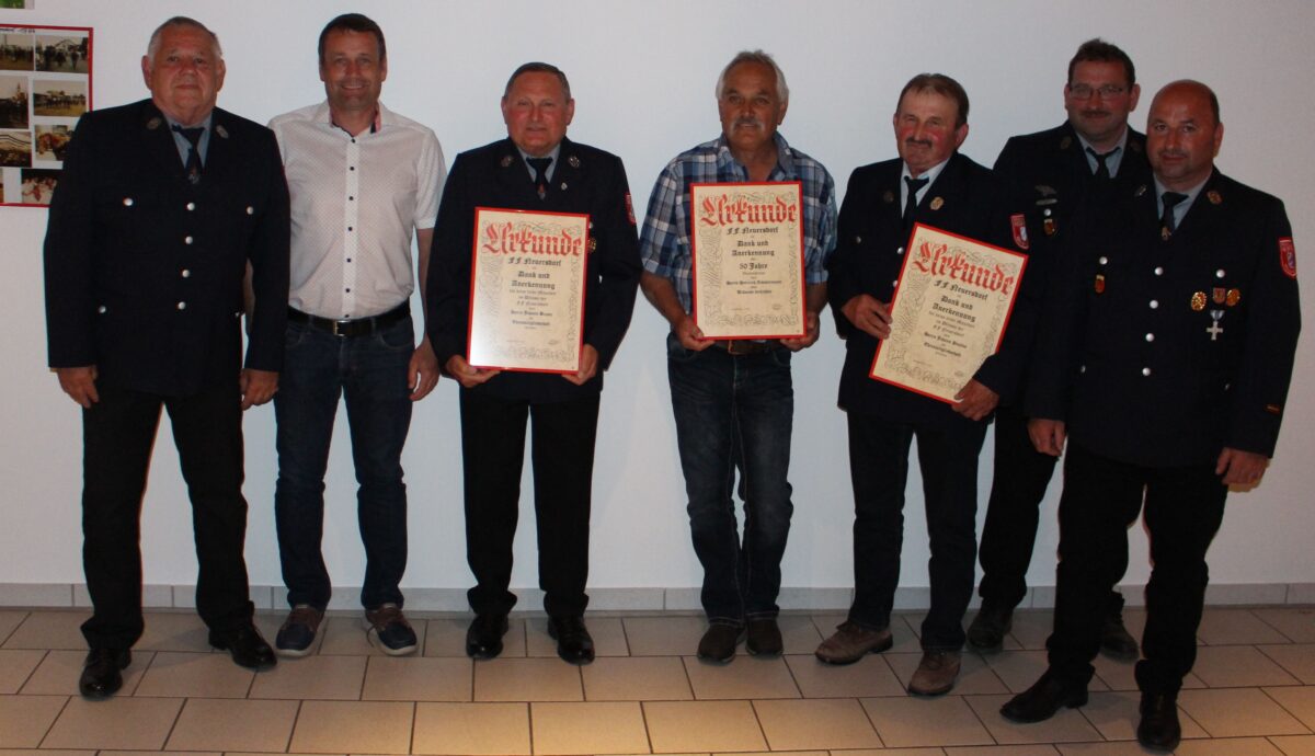 In den letzten beiden Jahren war es etwas ruhiger bei der kleinen aber feinen Wehr in Neuersdorf. Die Berichte vielen deshalb etwas kürzer aus, umso länger war die Liste der zu Ehrenden. Neben der Ehrung von langjährigen Mitgliedern gab es Ernennungen zu Ehrenmitgliedern.