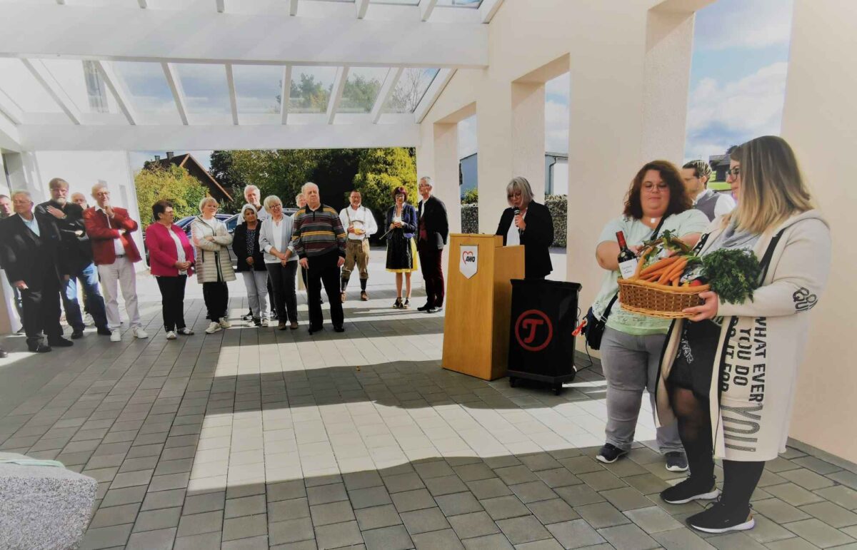 Im Namen des AWO-Bezirksverbandes Niederbayern/Oberpfalz in Regensburg dankte Bezirksvorsitzender Bernhard Feuerecker für das 50-jährige Engagement im Ehrenamt. “50 Jahre lang die Geschicke eines Ortsvereins leiten und maßgeblich prägen, heißt angenehme, aber auch unangenehme Entscheidungen treffen.” Ein Geschenk für die Gesundheit gab es nicht zuletzt von den Bediensteten, wobei der Korb unter anderen einen Knoblauch als Lebenselixier und weiteres Gemüse für gesunde Organe enthielt. “All diese Lebensmittel tun dir gut und dazu ein Gläschen Rotwein, dann wirst du 100 Jahre alt”, so Pflegedienstleiterin Nicole Frischholz im Namen ihres Teams.