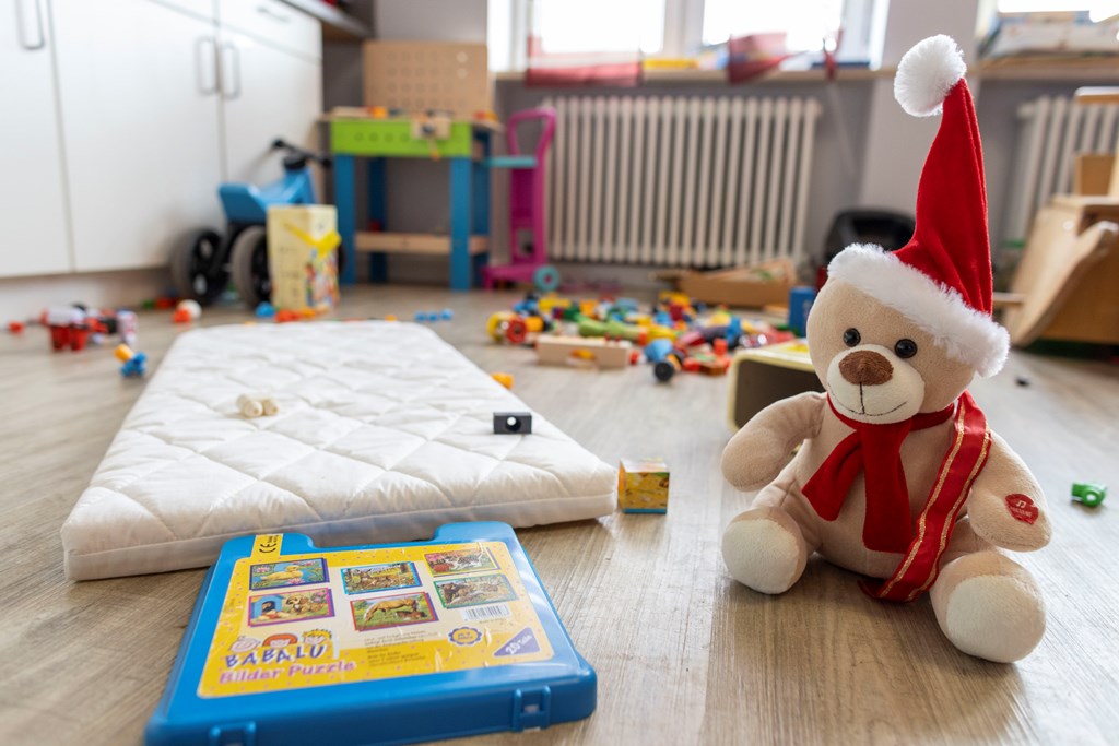 Das Team des Bayerischen Roten Kreuzes Tirschenreuth hat innerhalb von drei Tagen aus den leerstehenden Räumen einen Ort gemacht, an dem die geflüchteten Menschen richtig ankommen können. Lukas Münster ist beim BRK für die Koordination zuständig und die meiste Zeit vor Ort. Er erzählt, wie letzthin ein Bus mit Frauen und Kindern ankam, mitten in der Nacht. Sie hatten sich auf der langen Busreise vier Tage nur von Snacks ernährt.