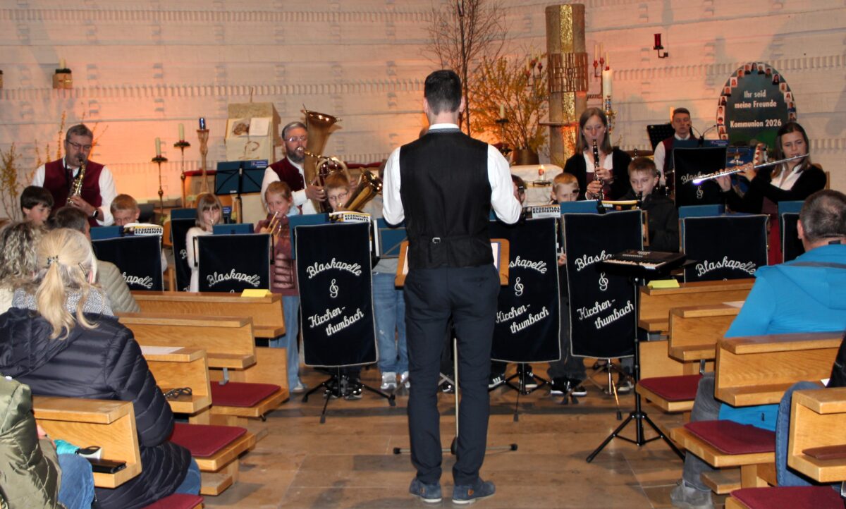 Ein klangvoller Frühlingsabend erfüllte die Pfarrkirche Mariä Himmelfahrt beim gemeinsamen Konzert des Chors Polyphonia und der Blaskapelle Kirchenthumbach. Drei Stücke der Bläserklasse der Grundschule Kirchenthumbach eröffneten das Programm. Das Angebot, bereits ab der zweiten Klasse ein Blasinstrument zu erlernen und später in die Jugendblaskapelle zu wechseln, trägt hörbar Früchte.