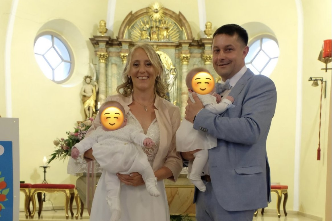 Im weiteren Verlauf wurden die beiden Zwillingsmädchen Sophie und Helena getauft. Maria Sponsel hatte dafür wundervolle Taufkerzen und Hochzeitskerzen selbst hergestellt, die diesen feierlichen Rahmen perfekt umrahmten. „Sophie hatte, trotz vielem Wasser vom Pater, die Taufe vollkommen verschlafen und Helena war auch so brav in der Kirche. Wir haben einen Apfelbaum aus Tonpapier gestaltet, wo jeder Apfel mit einem Wunsch versehen von den anwesenden Gläubigen als Erinnerung an dieses Bild festgeklebt wird. Dieser Baum kommt dann in ihr Kinderzimmer“, erzählte Maria Sponsel. Besonders stolz ist sie, dass ihr Bruder und ihre Schwester die Patenschaft für Sophie und Helena übernommen haben, die ab dem 11. Juni bereits sechs Monate alt sind.