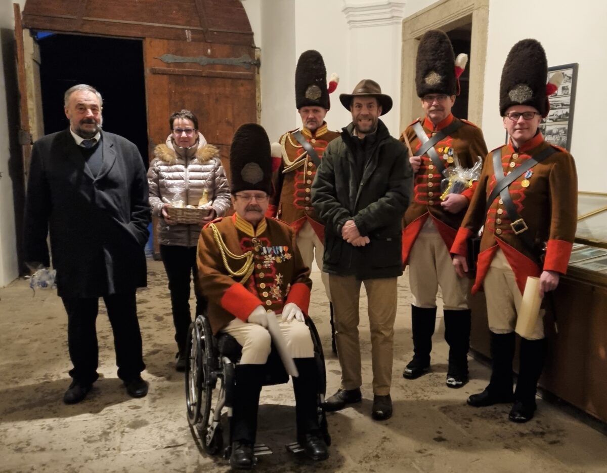 Eine Selbstverständlichkeit, dass die Geschäftsführerin des Waldthurner Gänsbürgerladens, Petra Reil sowie der Waldthurner Bürgermeister Josef Beimler, der den Lobkowitzern eng verbunden ist, anreisten, um zu gratulieren. Auch eine Abordnung der “Historisch Hochfürstlich Lobkowitzschen Grenadiergarde der Gefürsteten Grafschaft Störnstein” ließ es sich nicht nehmen, dem jungen Fürsten das Beste zu wünschen und zu dessen Ehren einen Salut zu schießen.