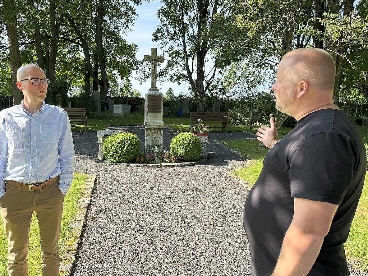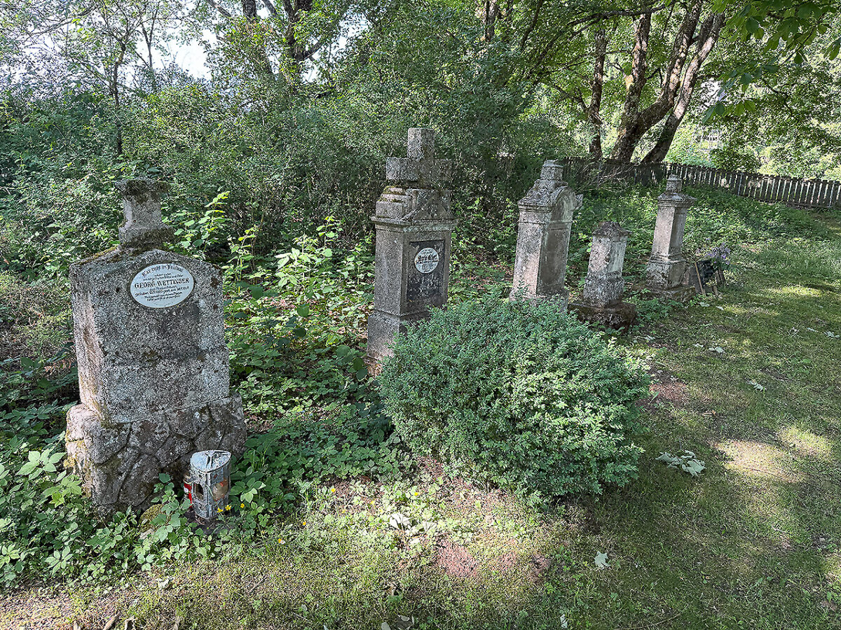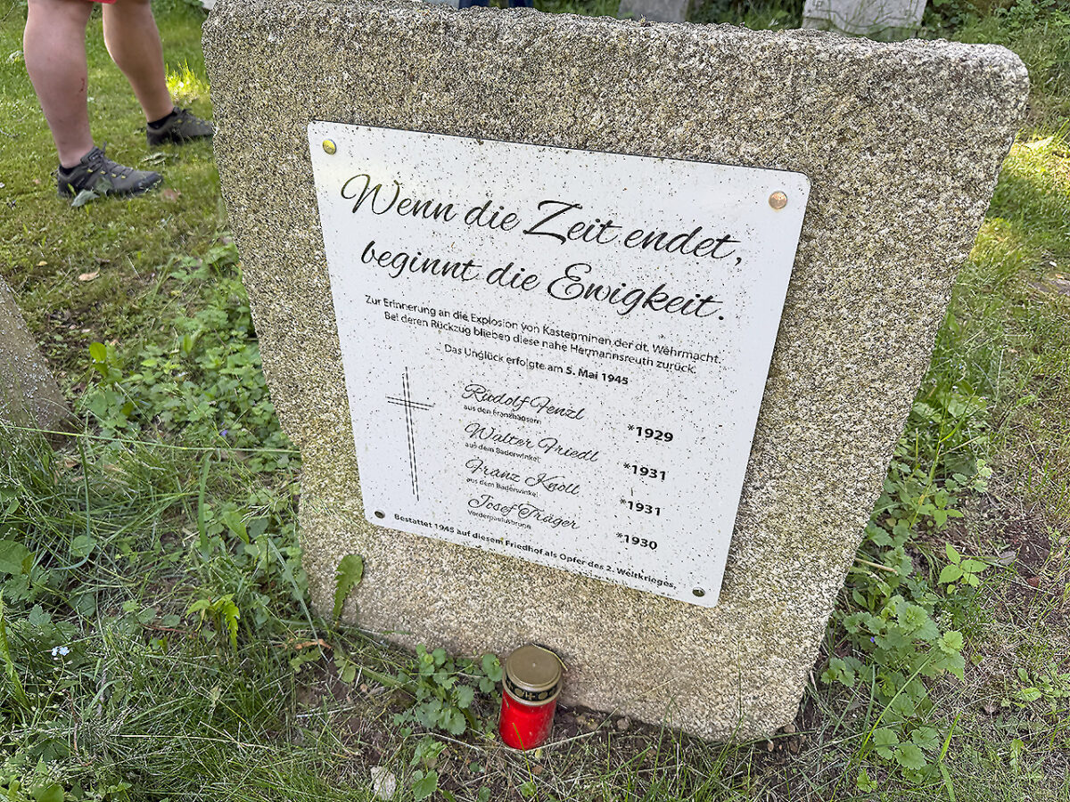 „Der Friedhof auf der anderen Straßenseite wurde nach der Grenzöffnung mithilfe des tschechischen Bürgermeisters František Čurka aus Halže wieder hergestellt“, erklärt Wolf, dessen Großmutter in einem Ortsteil von Paulusbrunn aufwuchs. „Ich selbst habe mit meiner Tochter einen der Grabsteine aus dem Moorgebiet gezogen und hierhergebracht.“ Die Angehörigen der Verstorbenen pflegen die Gedenkstätte unter den großen Lindenbäumen bis heute.