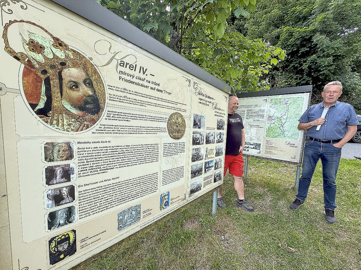 Ein grenzüberschreitender Panoramaweg verbindet heute entlang der bayerisch-tschechischen Grenze Bärnau und Tachov. Unterstützt wurde das Projekt von der tschechischen Gemeinde Obora, vom Verein „Via Carolina-Goldene Straße“ und dem Naturpark Nördlicher Oberpfälzer Wald. „Man sollte die Geschichte seiner Landschaft kennen“, erklärt Horáček, tachover Stadtrat und Vorsitzender des Vereins für Bayerisch-Tschechische Freundschaft.