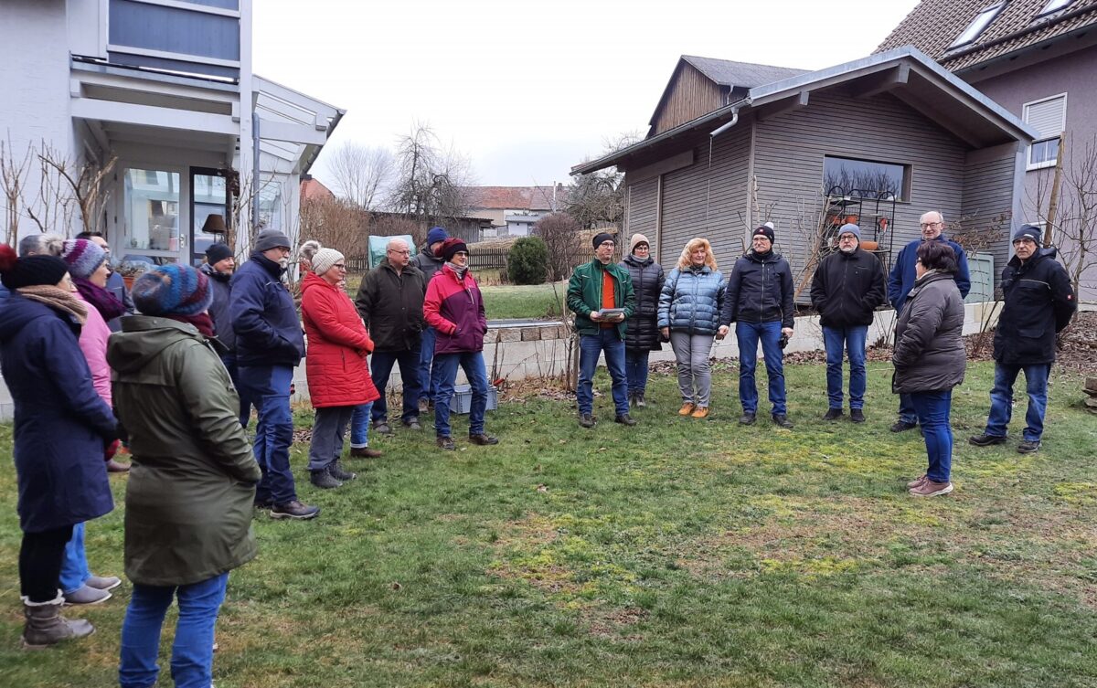 Seine wichtigste Botschaft, die er allen Teilnehmern mitgab, war: „Nicht zu zimperlich sein, meist wird zu wenig geschnitten“. Da die Temperatur, vor allem die Sonne zu wünschen übrigließ, gab es zum Aufwärmen und zum abschließenden Austausch noch Kaffee und Kuchen in der Garage der Familie Götz. Thomas Huber bietet noch weitere interessante Themen als Kurse an, daher sind sich die Mitglieder einig, ihn gerne wieder einzuladen.