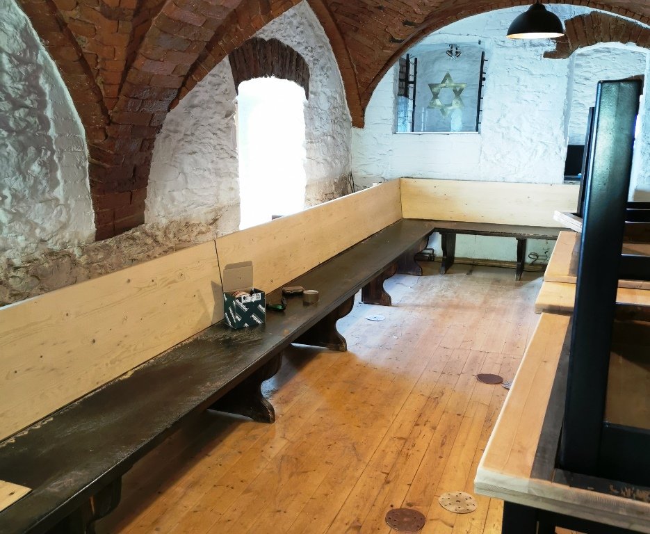 Die alten Kirchenbänke mitsamt der Tische sowie die abgetretenen Treppenstufen und Fußböden – alles wird abgeschliffen und gestrichen. Sie möchten sich optisch noch mehr dem Trend des Industrial Living annähern, natürlich prädestiniert für ein Gebäude, in dem sich noch Teile des Brauinventars von 1872 befindet.