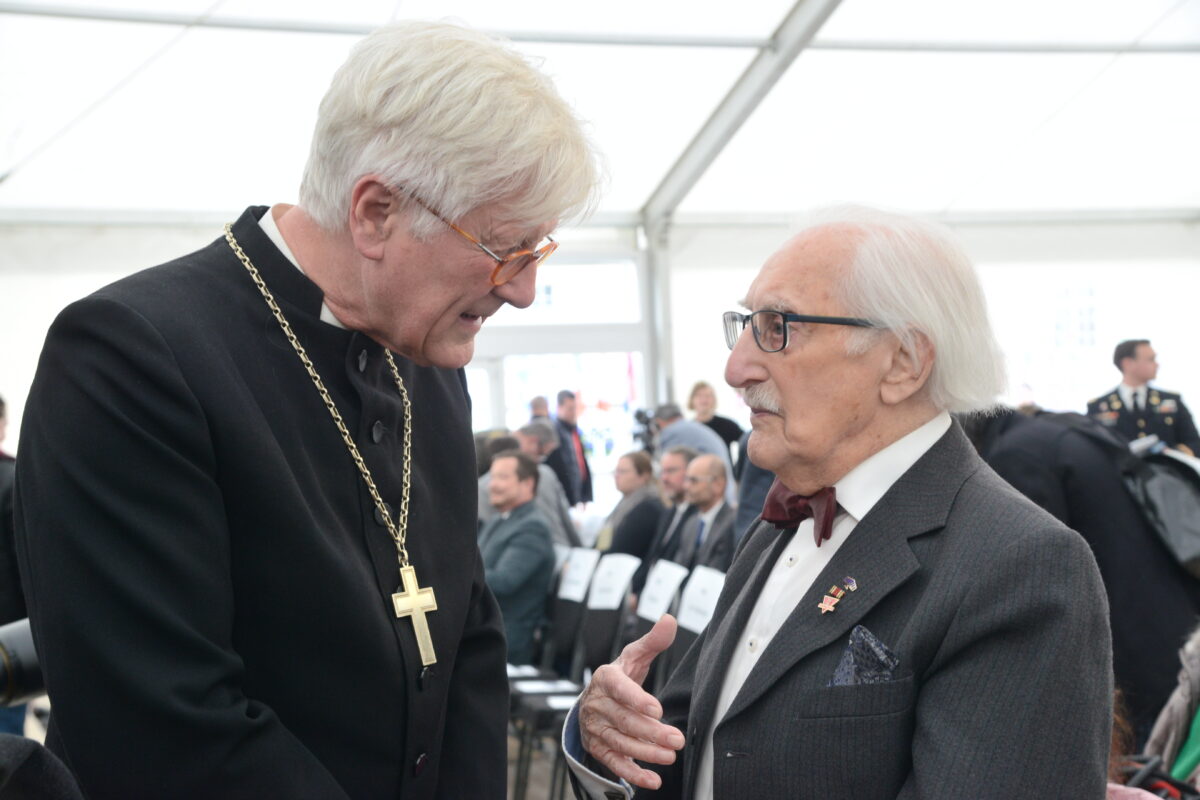 Besonders beeindruckte die Ansprache des 97-jährigen ehemaligen Häftlings Leon Weintraub. „Klein sei die Gruppe von Überlebenden, die noch in der Lage sind, an diesem Gedenktag teilzunehmen“, meinte er einleitend. Ausdrücklich hob der Redner den Einsatz der Mitarbeiter in der Gedenkstätte hervor, die das tragische Schicksal der Häftlinge nicht in Vergessenheit geraten lassen.