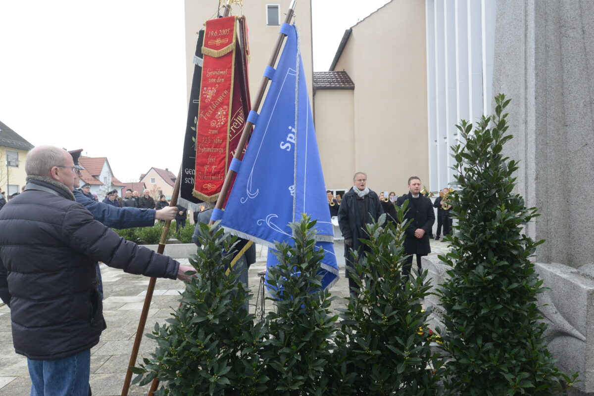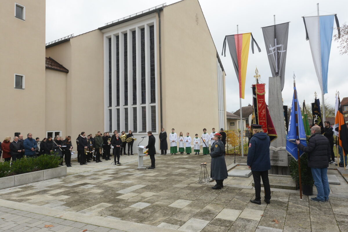„Nicht nur die Toten der beiden Weltkriege, auch die Toten der heutigen kriegerischen Auseinandersetzungen verpflichten uns Lebende, dem Hass zwischen Völkern, Rassen und Religionen entgegenzutreten“. Mit dieser klaren Aufforderung endete die Ansprache Bürgermeister Ernst Lenks bei der Gedenkfeier zum Volkstrauertag am Sonntag am Kriegerdenkmal.