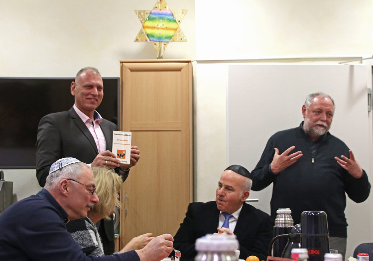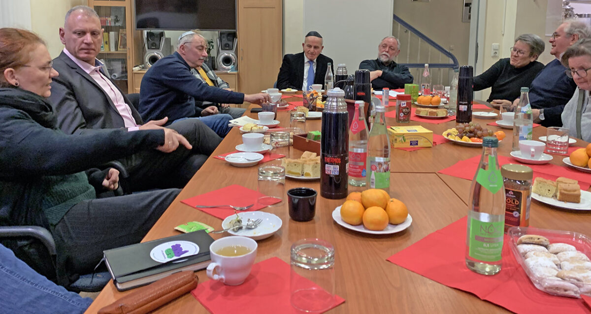 An der festlich gedeckten Tafel von Leonid Shaulov, Vorsitzender der Jüdischen Gemeinde Weiden, und Sozialarbeiterin Marina Jourovetskaja sitzen an diesem Abend Werner Friedmann, vor 35 Jahren zusammen mit dem katholischen Pfarrer Alfons Forster Mitgründer der christlich-jüdischen Gemeinschaft, sowie Pfarrer Gerhard Pausch, Gründungsmitglied des Gesprächskreises, die evangelische Pfarrerin Christiane Weber mit Susanne Götte, Öffentlichkeitsreferentin des Dekanats, der Imam Maher Khedr des deutschsprachigen Muslimenkreises Weiden, die Integrationslotsin Stefanie Wildenrother mit Thomas Hentschel, ehemaliger Integrationsbeauftragter – und eine Reihe engagierter Frauen verschiedener Gemeinden.