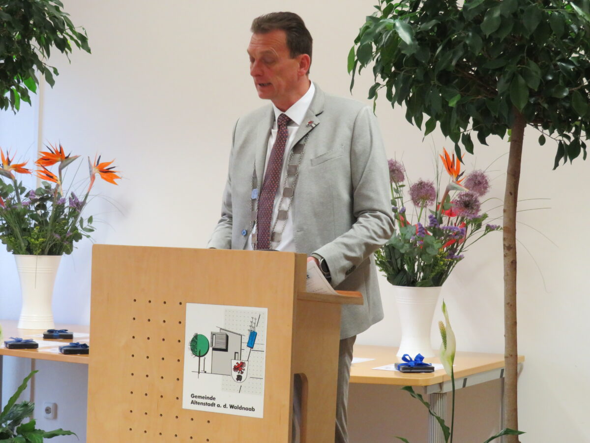 Bürgermeister Ernst Schicketanz eröffnete seine Rede mit den Worten „Wenn du Sonnenschein in das Leben anderer bringst, werden seine Strahlen auch dich treffen“ des britischen Schriftstellers James Matthew Barrie. Sie, die zu Ehrenden, haben viele Sonnenstrahlen in das Leben anderer Menschen gebracht. Damit entstand viel Helligkeit und Wärme in der Gemeinde. Sie engagieren sich freiwillig für gute Sachen. Dafür wenden sie viele Zeit, Fantasie und Wissen auf. Damit tun sie etwas, was für unsere Gemeinde und die Gesellschaft unverzichtbar ist. Ob Sport, Kultur, Soziales oder Umweltschutz, überall engagieren sich Menschen ehrenamtlich. Sie sind bei der Feuerwehr, arbeiten in den Vereinen, betreuen Kranke oder unterstützen und trainieren Kinder und Jugendliche.