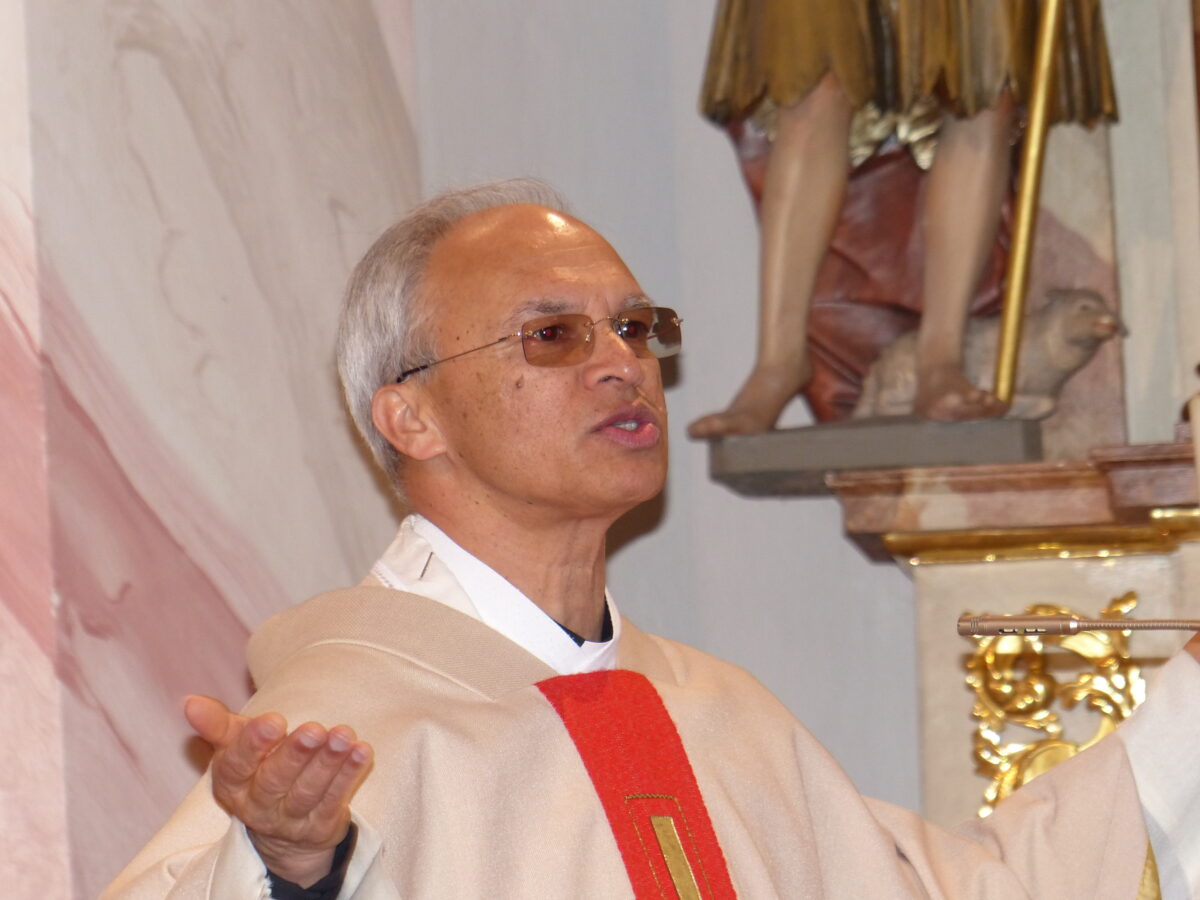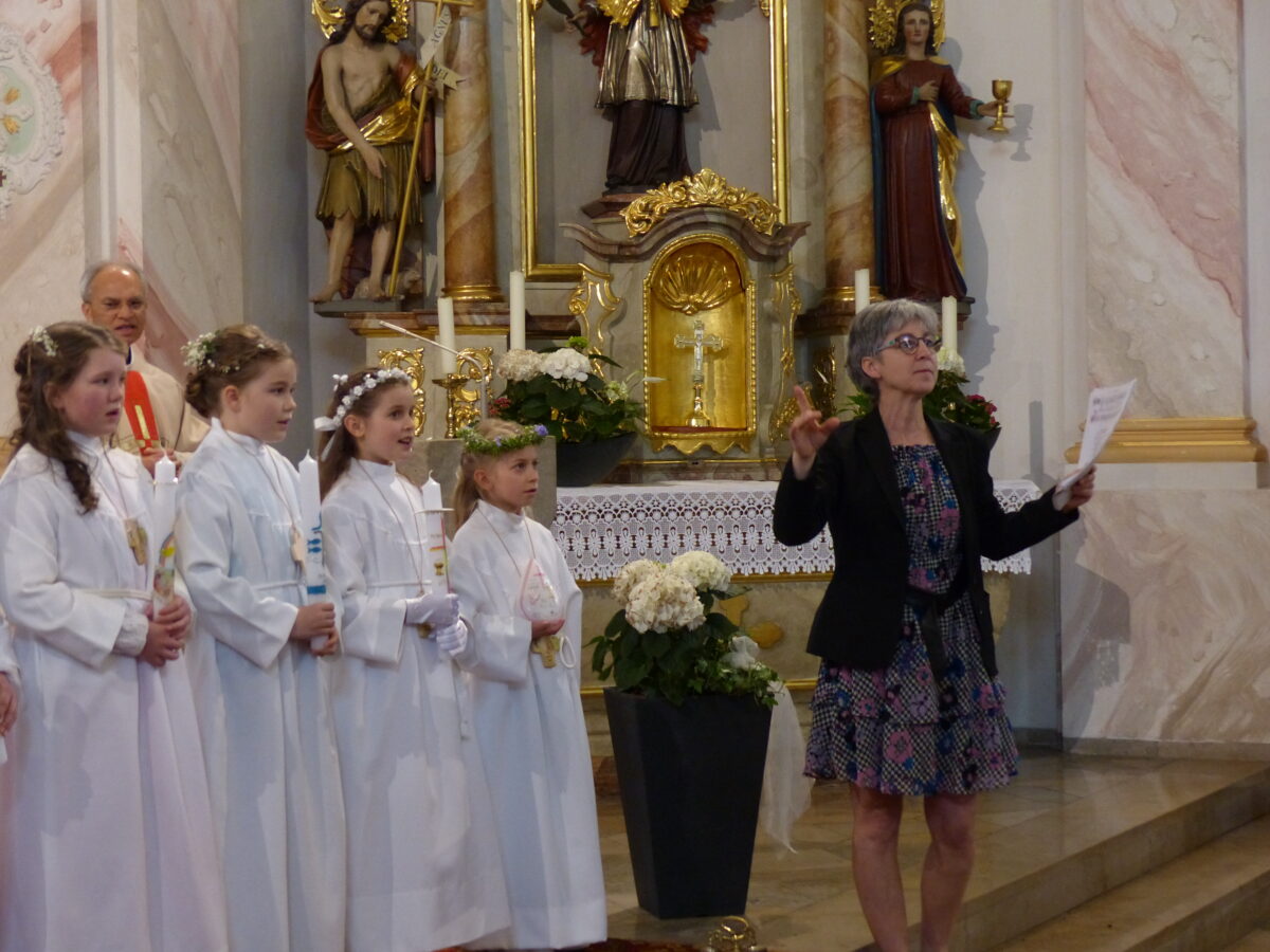 Zum ersten Mal traten dann die 10 Kinder an den Altar und empfingen den Leib Christi. Pfarrer Varghese Puthenchira dankte allen, die bei den Vorbereitungen mitgeholfen haben, sowie den Eltern, dem Kirchenchor unter Leitung von Maria Müller und allen für das Mitfeiern.
