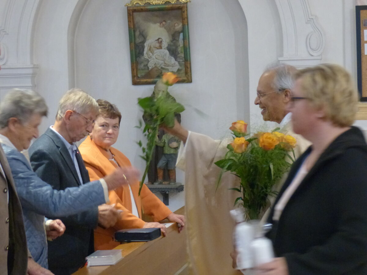 Die Jubilare trugen ein kurzes Dankgebet vor. Als Erinnerung gab es vom Pfarrer eine Kerze und für die Frauen eine Rose.