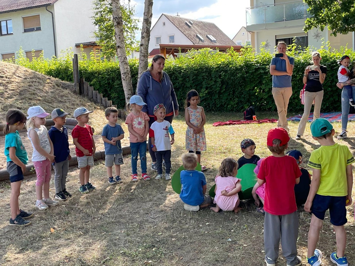 Zu guter Letzt versammelte sich die Schmetterlingsgruppe und ihre Angehörigen auf dem Spielplatz an der Kreuzkirche, um das Familienpicknick in freier Natur zu genießen. Die strahlenden Gesichter der Kinder spiegelten die Begeisterung wider, während sie ihre kleinen Kunststücke vorführten. Der sonnige Tag und das fröhliche Lachen der Kinder sorgten für eine unvergessliche Atmosphäre. Die mitgebrachten Köstlichkeiten wurden geteilt und genossen, während sich Gespräche über die bevorstehenden Abenteuer des neuen Kindergartenjahres entspannt fortsetzten.