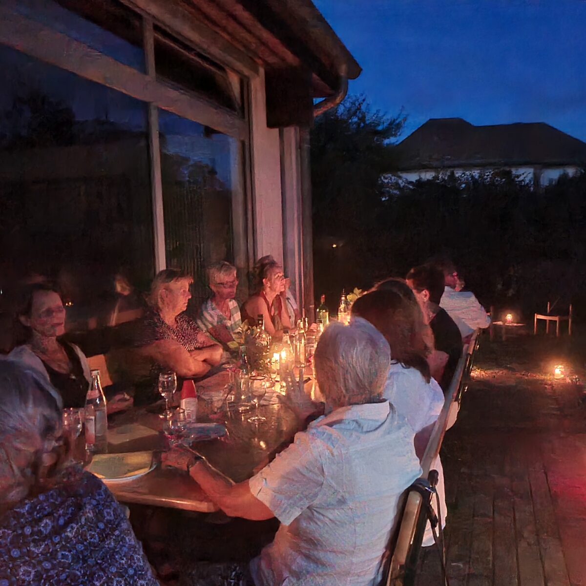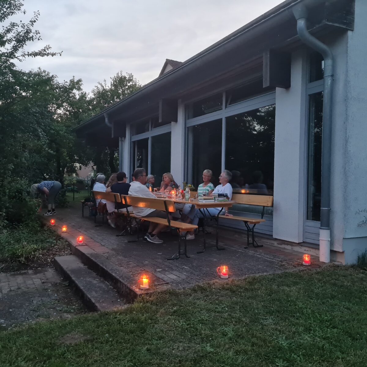 Den Abschluss des Weinleseabends bildete ein humorvolles Gedicht über Freundschaft, das Christine Rupprecht vortrug und somit perfekt auf den gemütlichen Teil der Veranstaltung überleitete. Bei Kerzenlicht, Flammkuchen, Schmalz- und Käsebroten sowie guten Gesprächen fand der Abend seinen Ausklang. Das Büchereiteam sieht in der erfolgreichen Veranstaltung eine Bestätigung ihres Anliegens und hegt den Wunsch nach einer Wiederholung dieses schönen Abends.