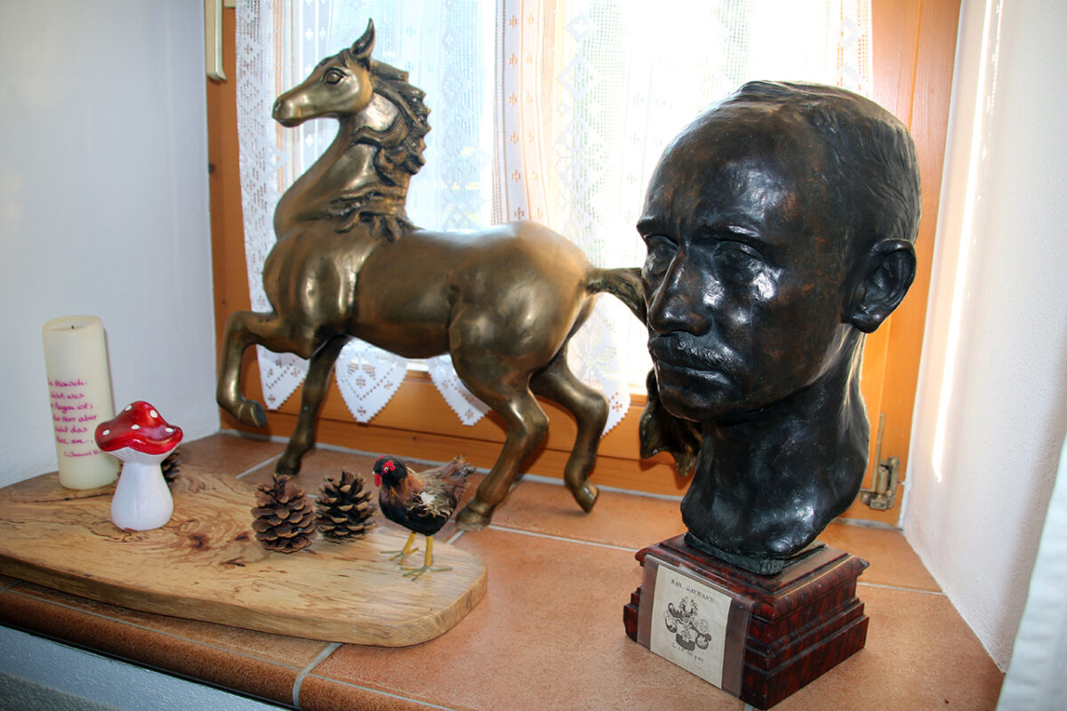 Daraus ist allerdings nichts geworden: „Ich hab‘ das Gewerbe abgemeldet“, sagt Robert frei heraus. „Weil wir zwei haben ja für uns was gesucht.“ Nämlich die selige Ruhe hinter hohen Mauern: „Uns ist entgegengekommen, dass wir da zumachen können im Vierseithof – Sie glauben gar nicht, wie schön ruhig es da herinnen ist, da kann da draußen sein, was will.“ Wohl behütet lebe man hier. Und was ist aus den Pferden und den Hunden geworden, die sie hier züchten wollten?