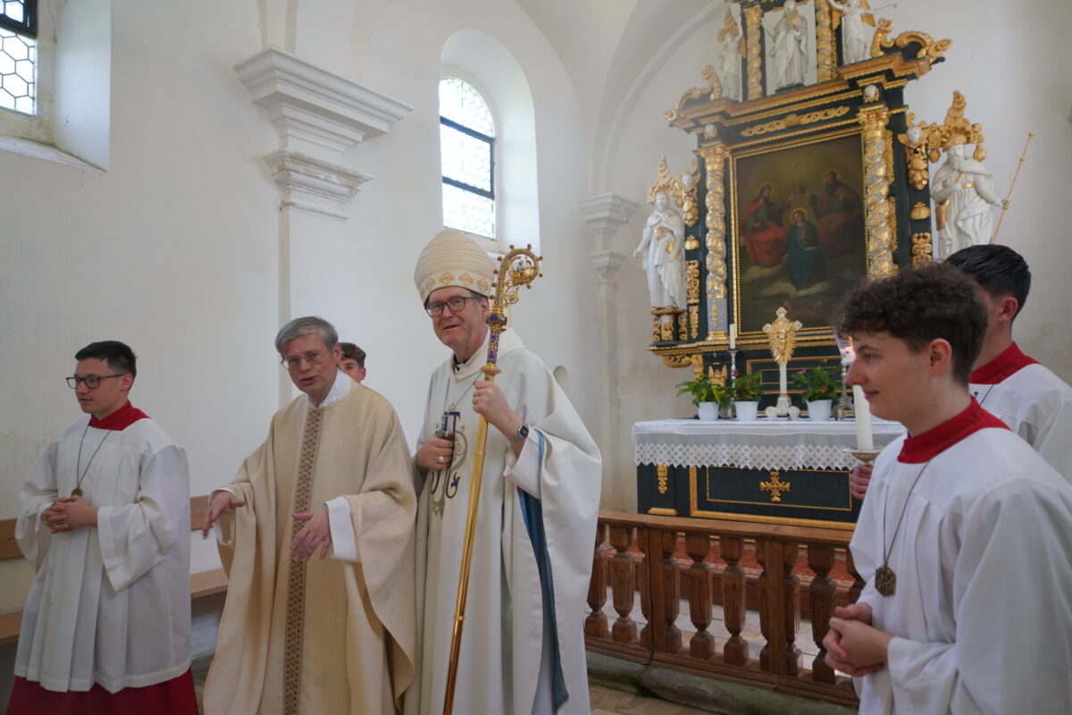 Anschließend ging der Weihbischof mit Pfarrer Götz und den Ministranten noch zur Dreifaltigkeitskapelle, um der Patroziniumskapelle einen Besuch abzustatten.